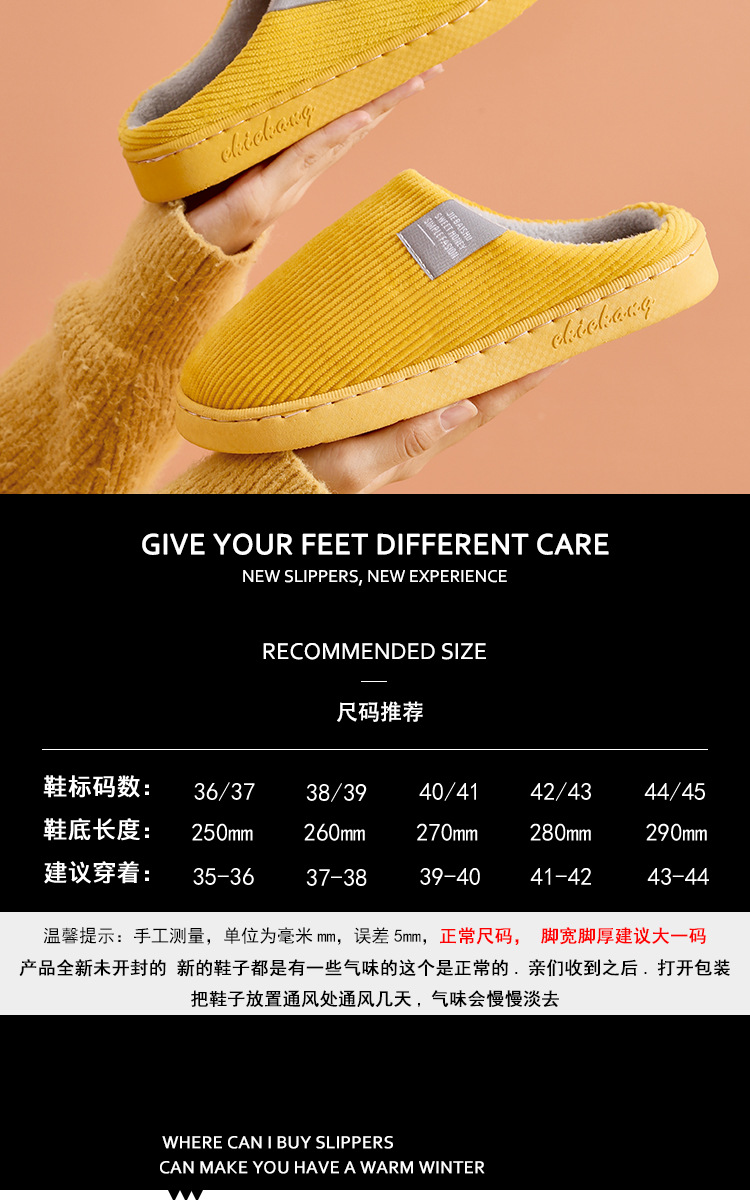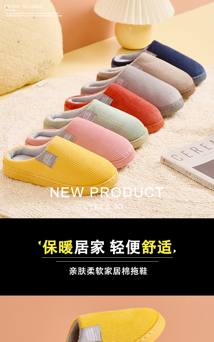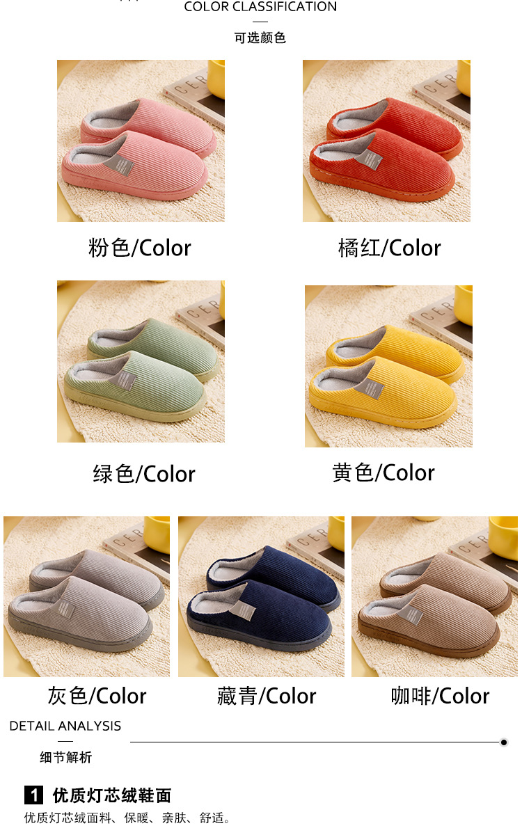 • Cotton slippers women's autumn and winter fleece-lined warm couple home indoor household confinement non-slip woolen slippers men's winter wholesale