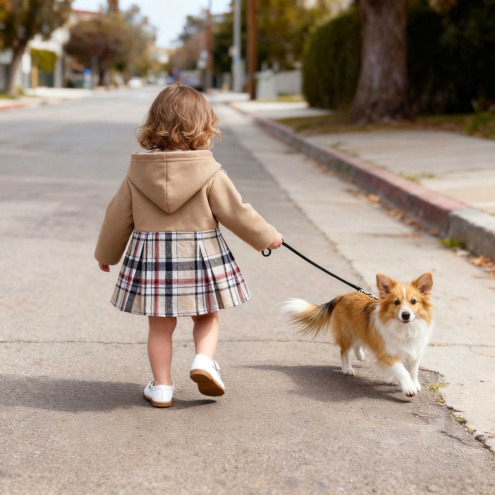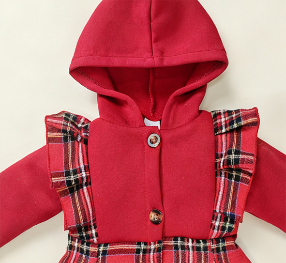 • Cross-border autumn and winter baby girls' hooded single-breasted plain lace thickened long sleeve one-piece coat