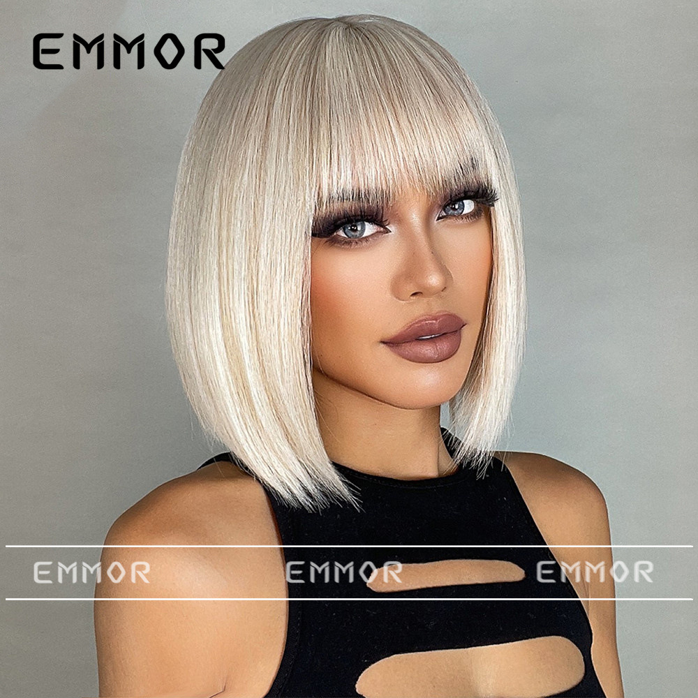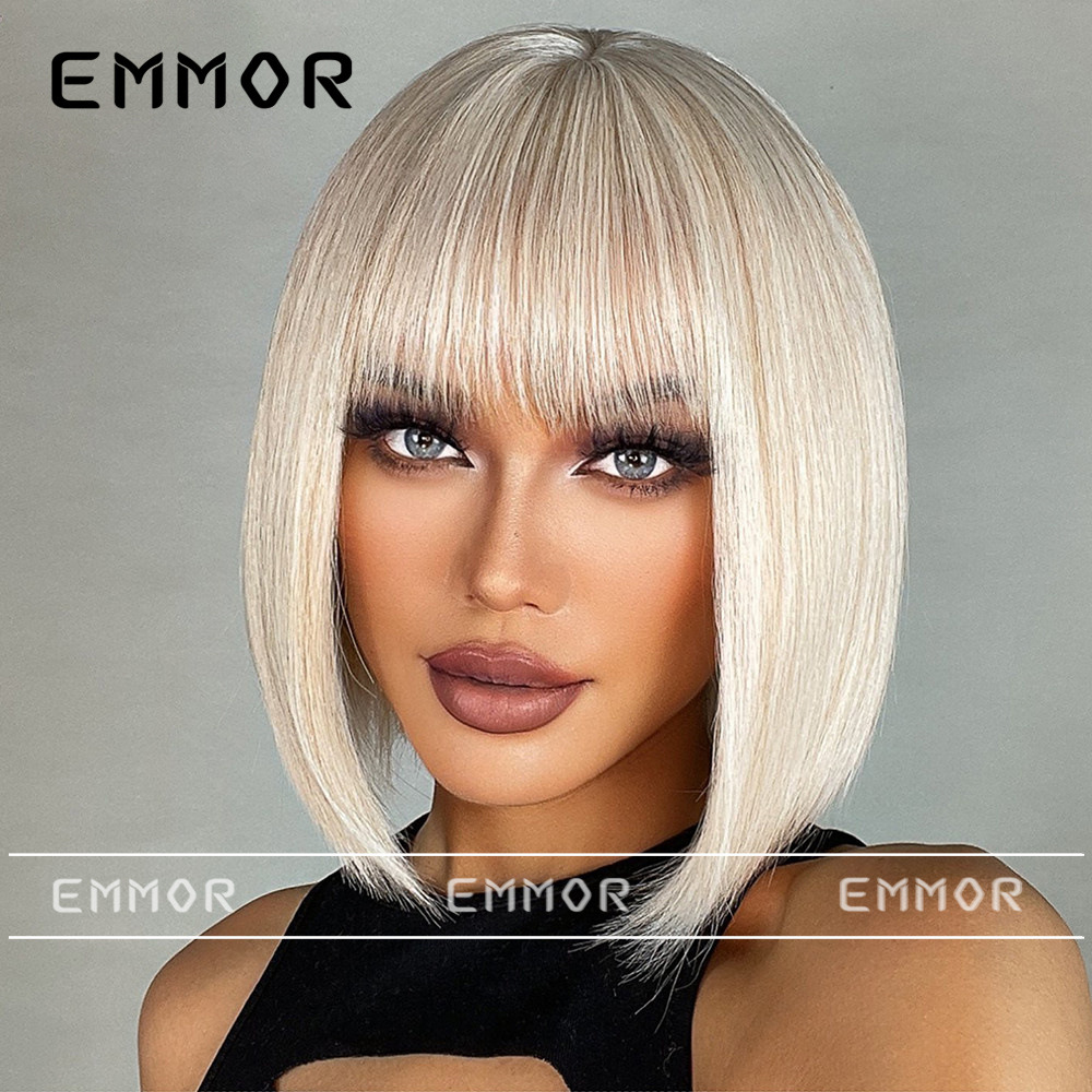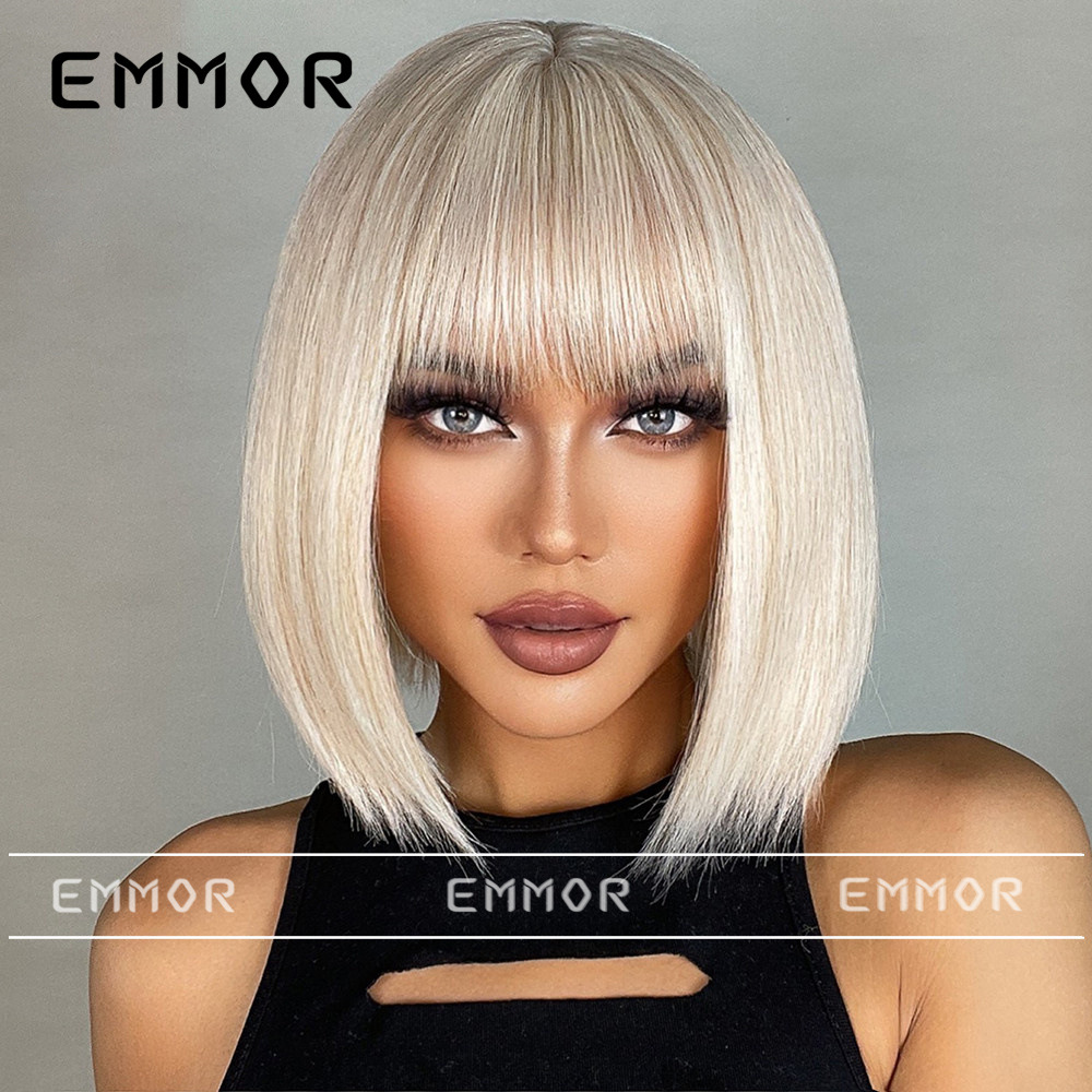 Cross-border foreign trade European and American style wig women's neat bangs white gold short straight bobo head full head wig hair
