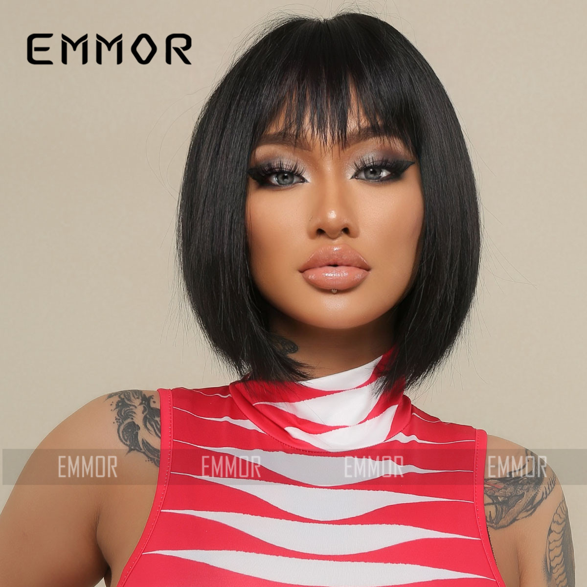 • Cross-border foreign trade European and American style wig women's neat bangs white gold short straight bobo head full head wig hair