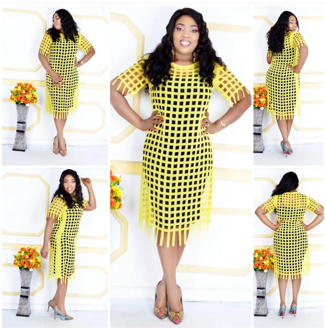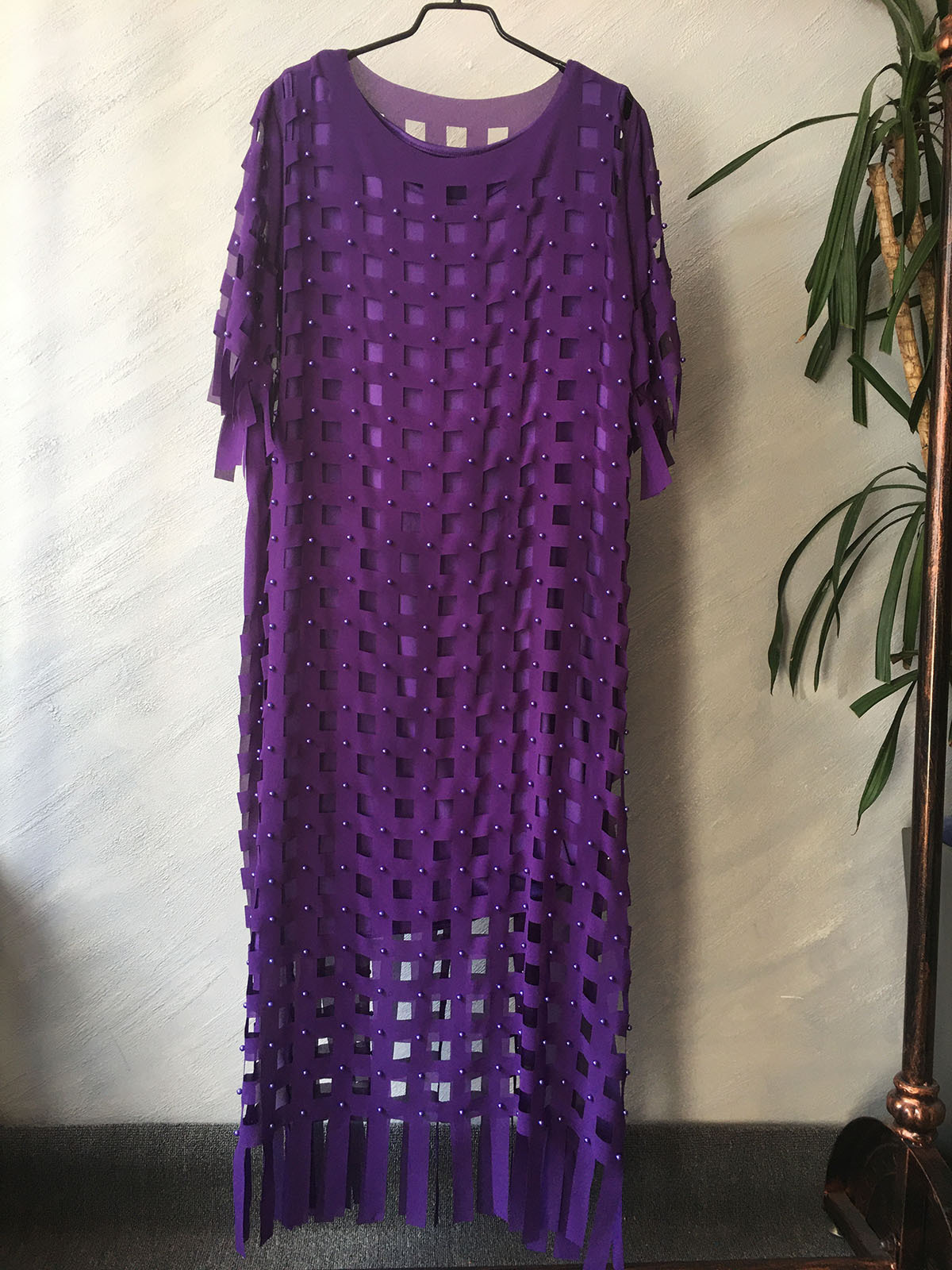 • Special clearance supply African fashion women's chiffon loose checkered hollow long T-shirt skirt + stretch vest two pieces
