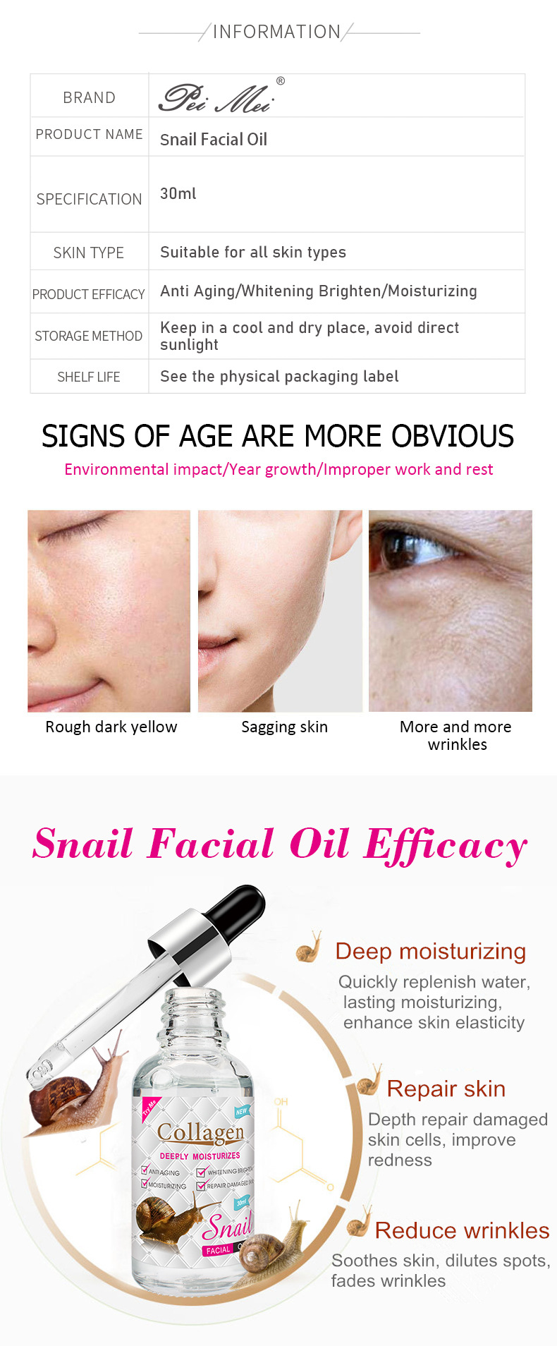 • Cross-border peimei snail bone collagen massage oil Facial massage Essential oil moisturizing and hydrating wholesale Facial oil