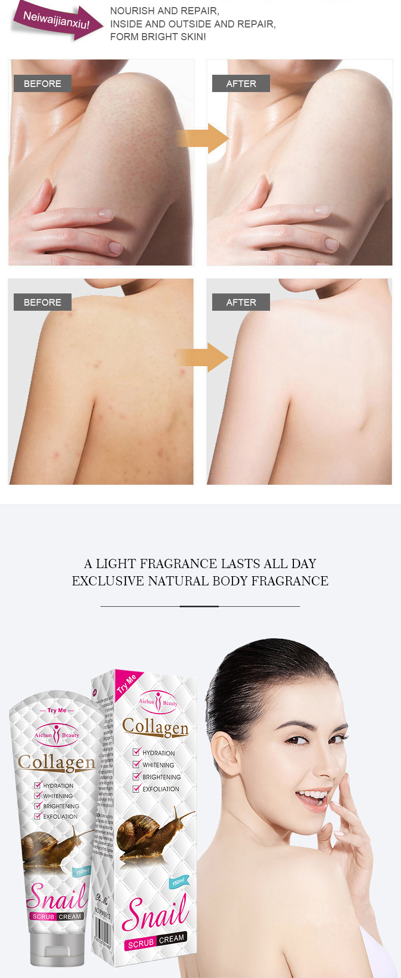 • Cross-Border Aichun Snail Scrub Whole Body Cleansing Exfoliating Pores Hydrating Wholesale Snail Scrub