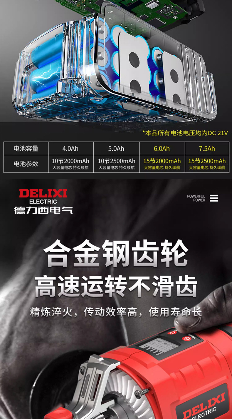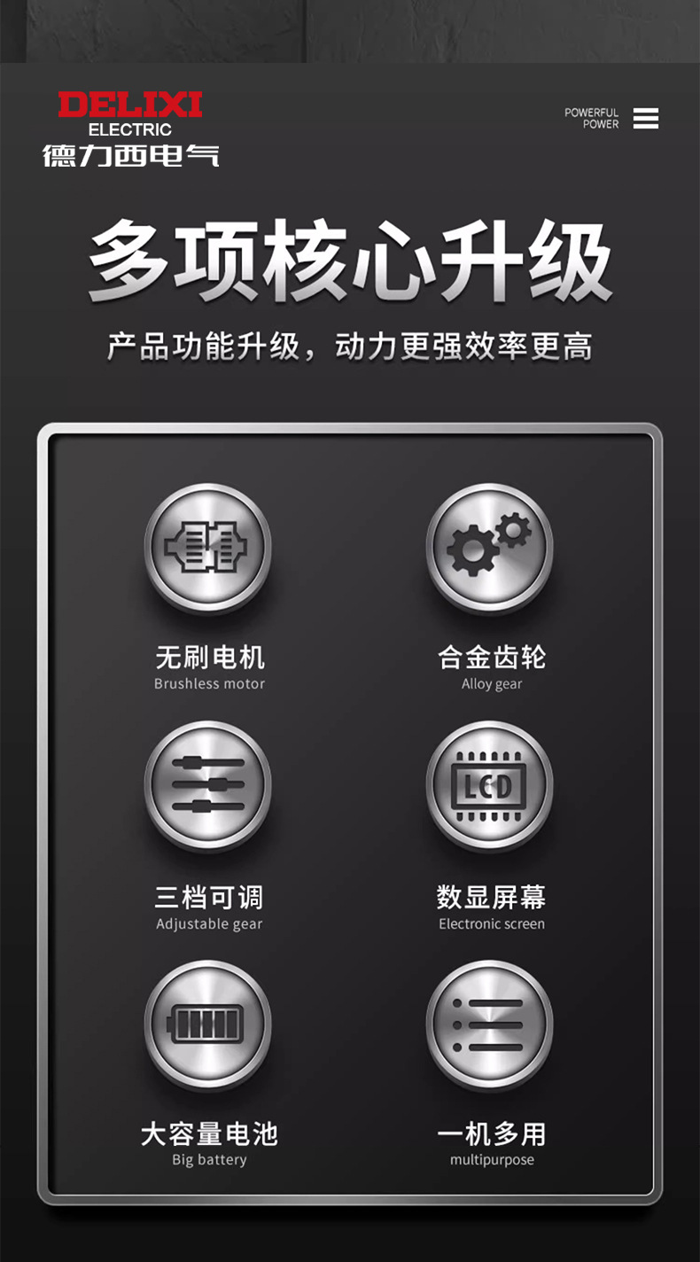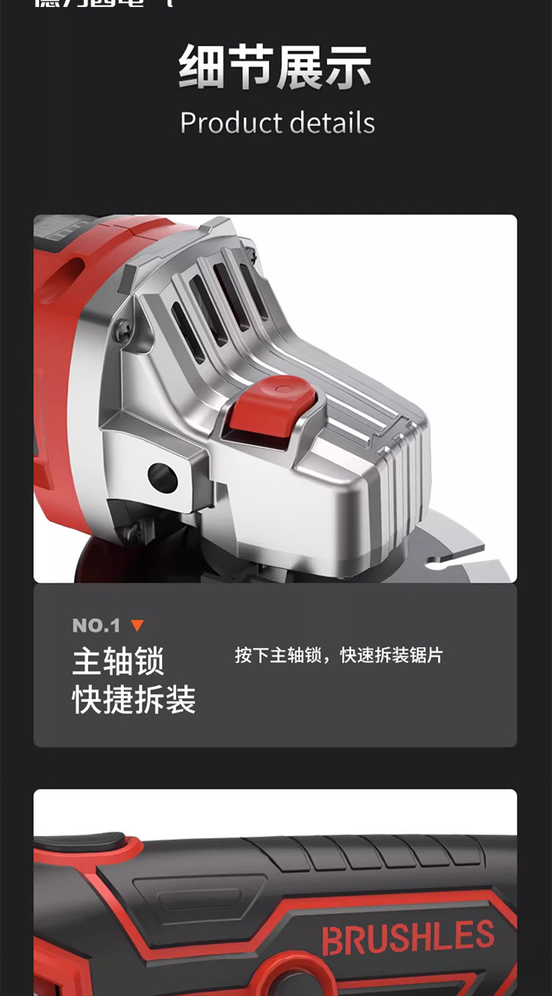 • Delixi brushless lithium-ion angle grinder rechargeable pool high-power cutting machine grinding hand wheel electric grinder