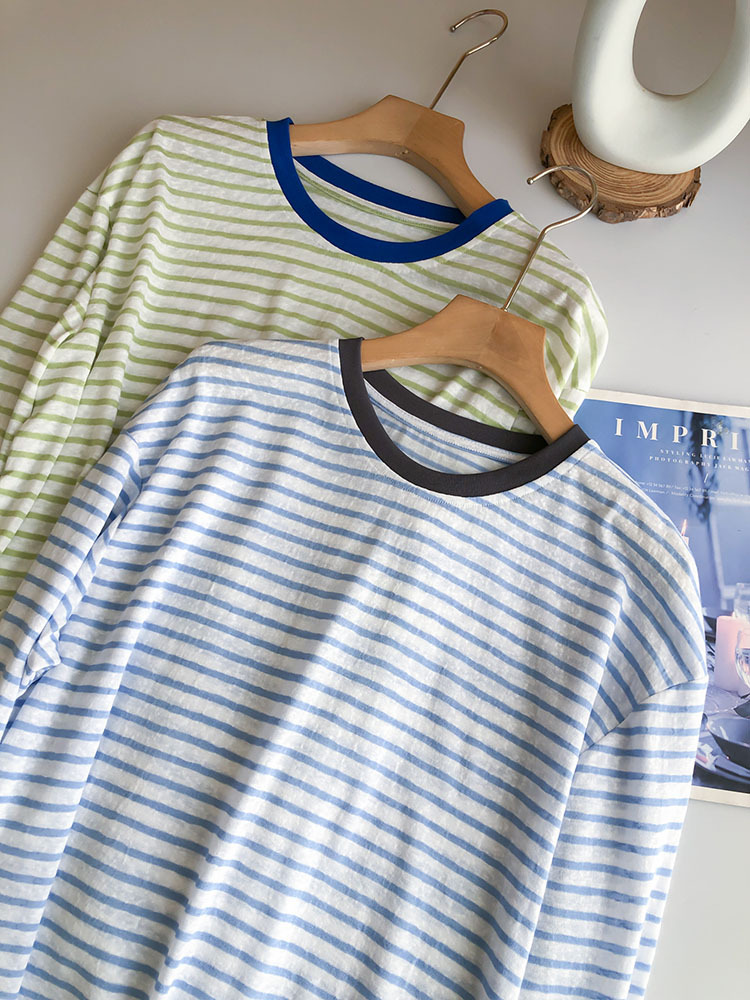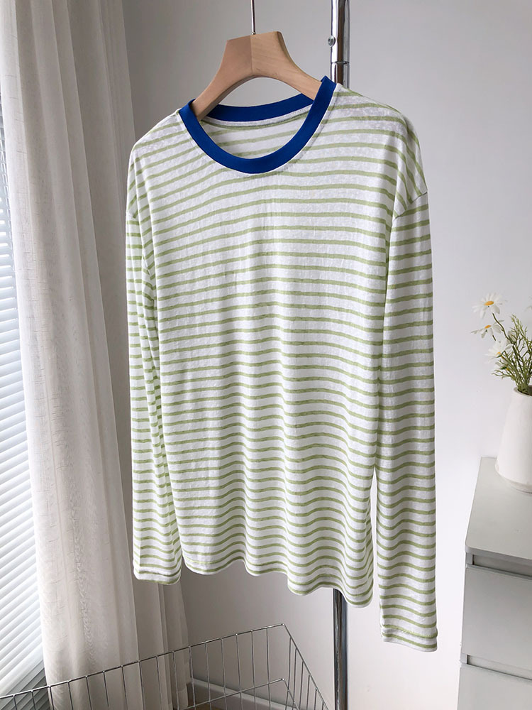 • Design Striped Thin Sunscreen Long-sleeved Base Shirt Women's Summer Air-conditioning Shirt Lazy Style Loose Casual Top