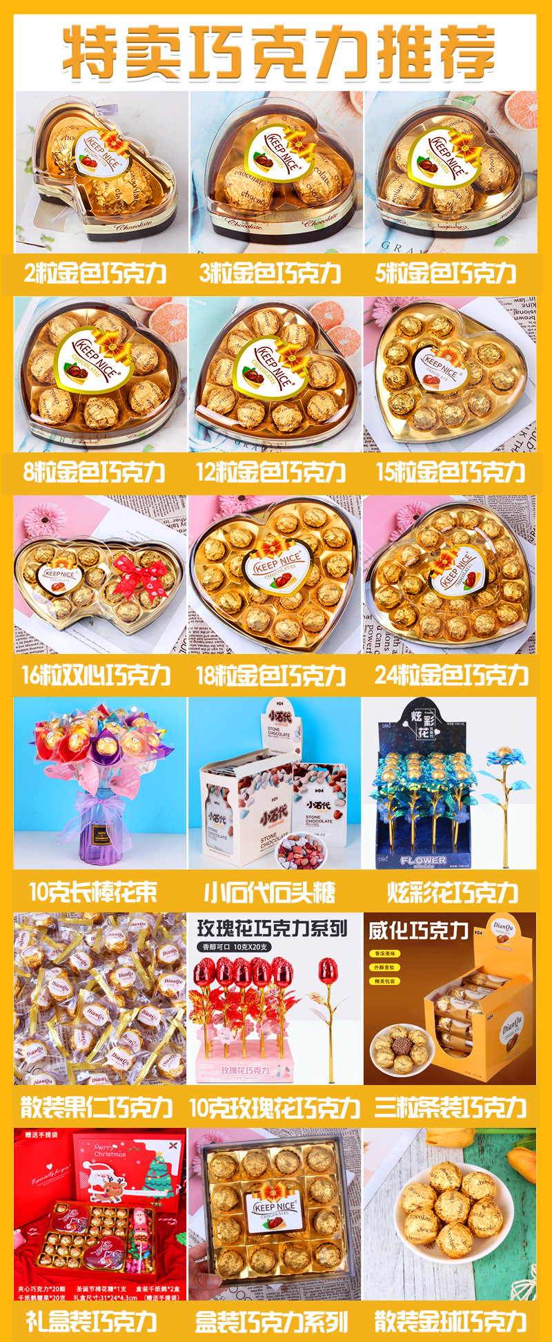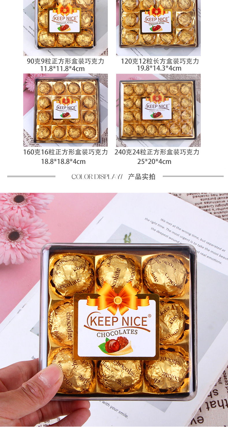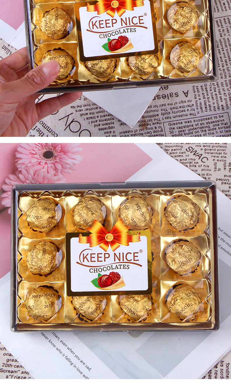 温馨提示:三粒巧克力一箱数量100盒,五粒一箱数量72盒,八粒一箱数量36盒,12粒一箱数量28盒,15粒一箱数量20盒,16粒一箱数量24盒,18粒一箱数量16盒,24粒一箱数量12盒