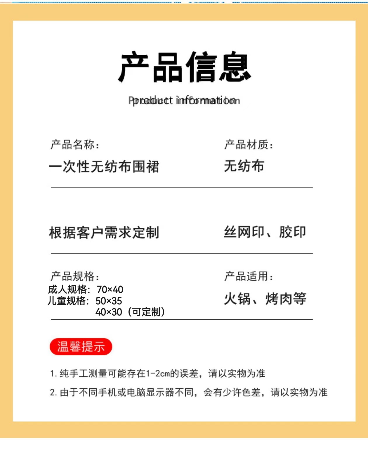• Thickened New Disposable Non-Woven Apron for Catering, Hot Pot, Barbecue, Oil-Proof and Customizable
