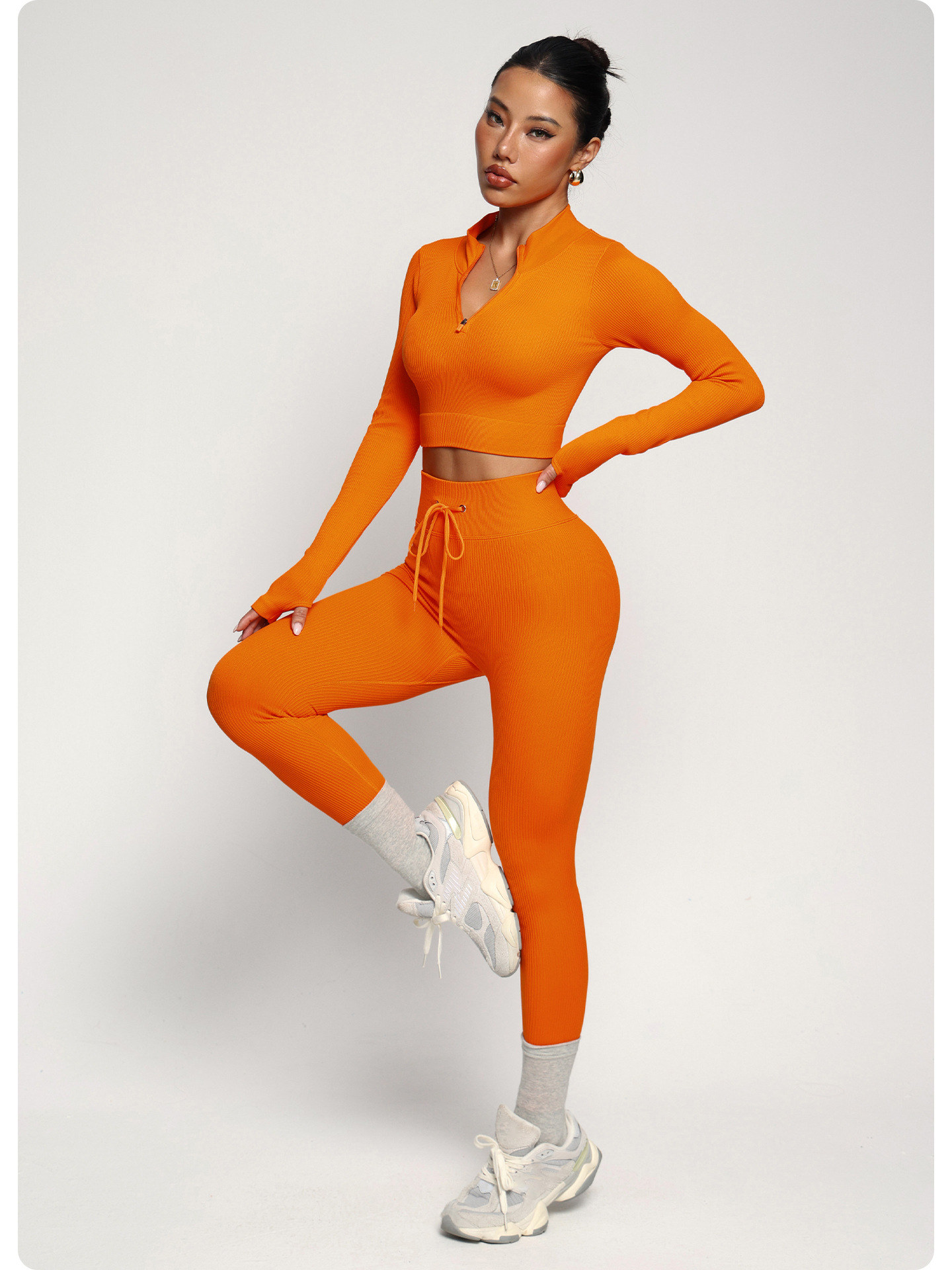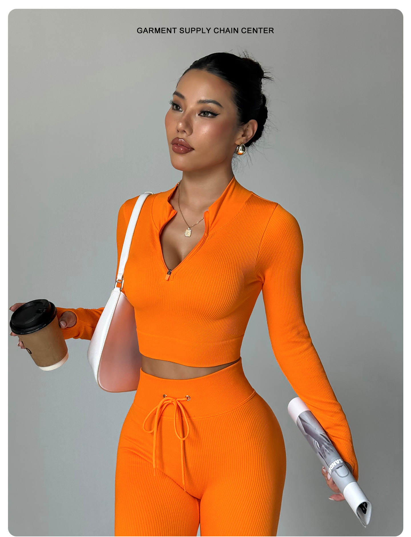 • Zhejiang brocade European and American yoga clothing long sleeve sports suit women's zipper fitness clothing yoga top lulu yoga pants pants