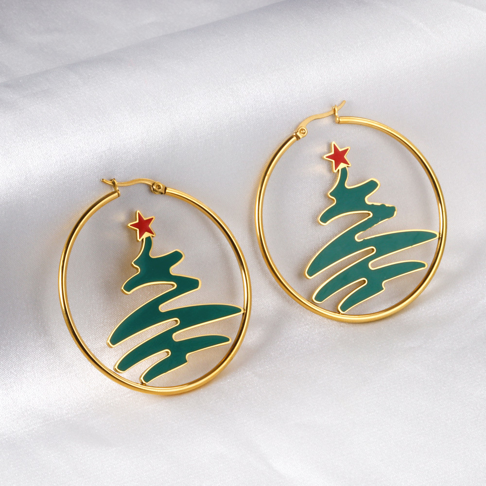 European and American Christmas Earrings, High-End Niche Light Luxury Earrings, Stainless Steel Christmas Tree Cross-Border Christmas Earrings