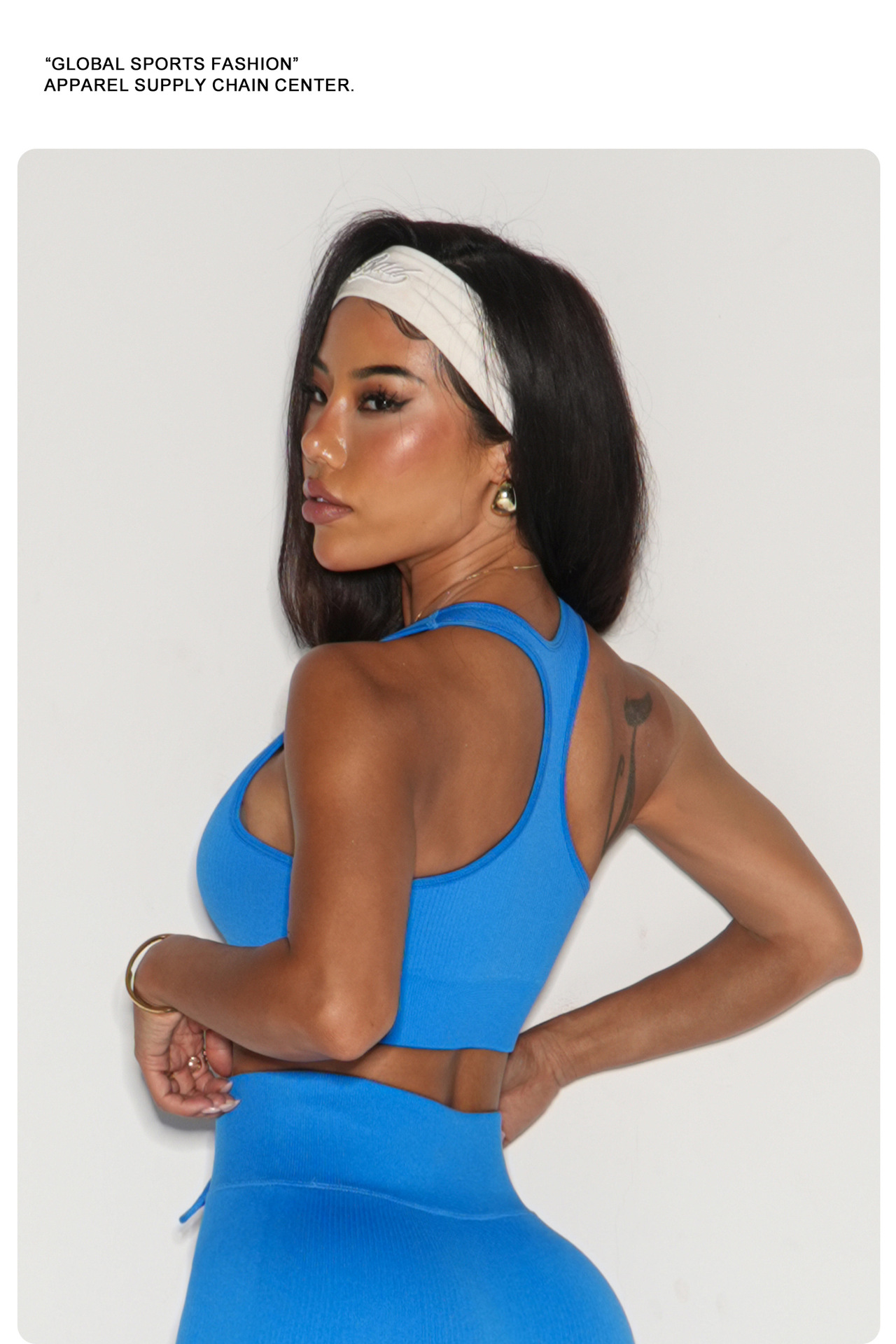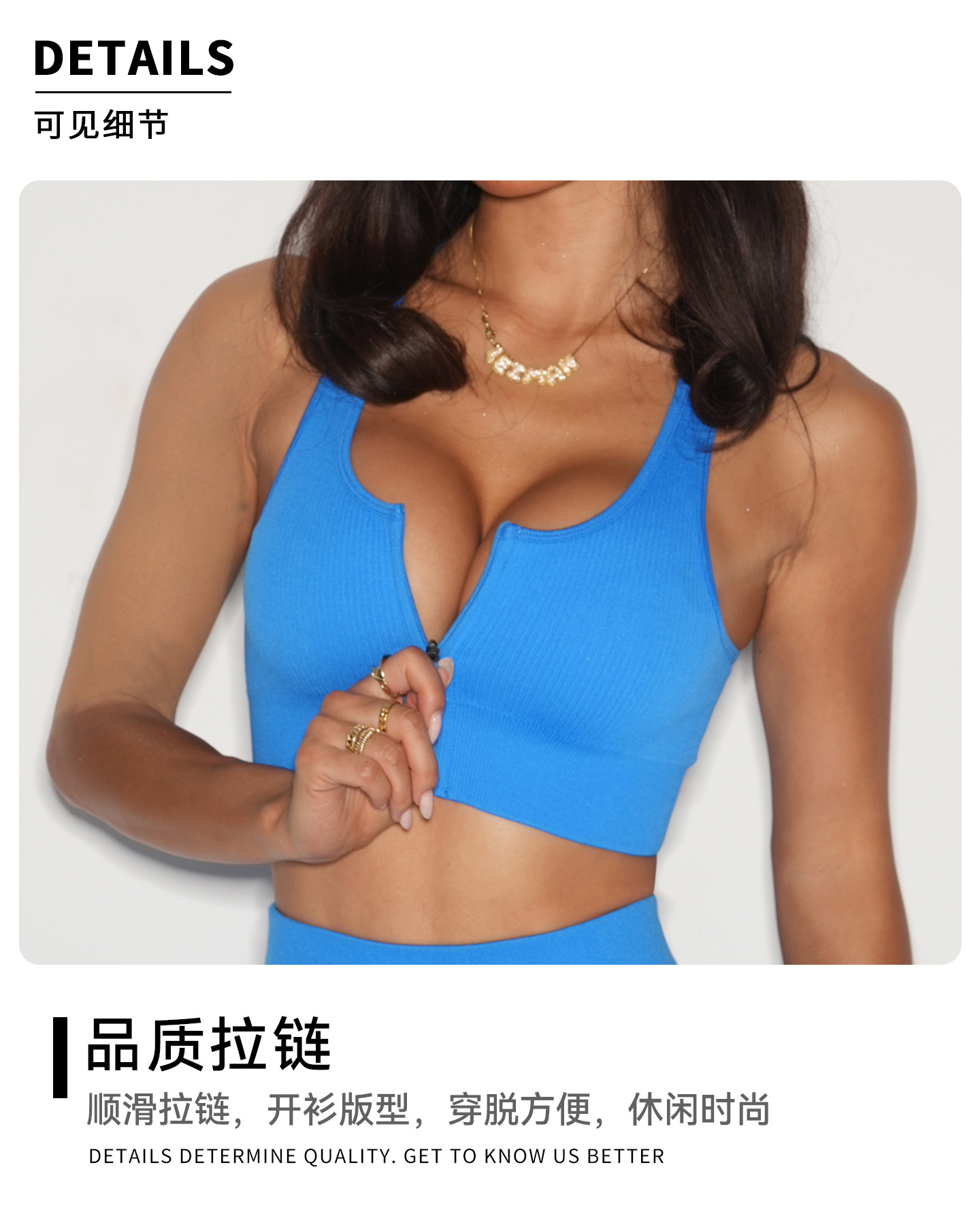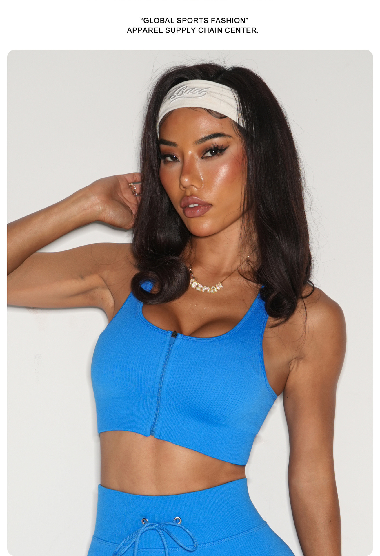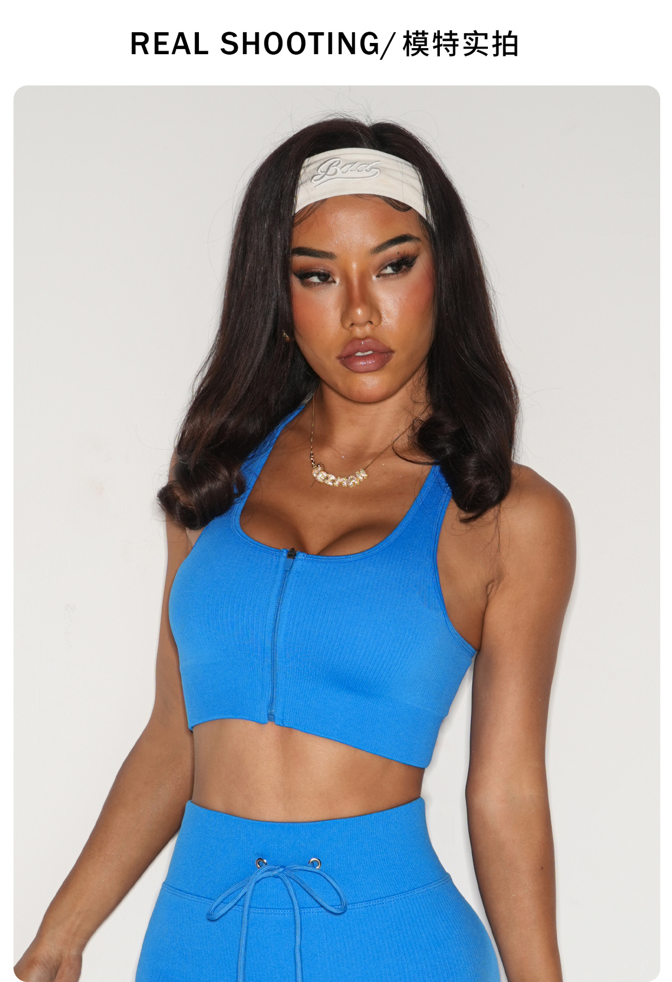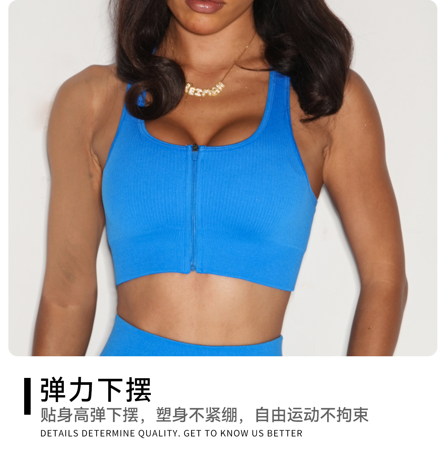 • [Zhejiang brocade] European and American seamless yoga clothing sports underwear outside fitness bra zipper back lulu yoga clothing