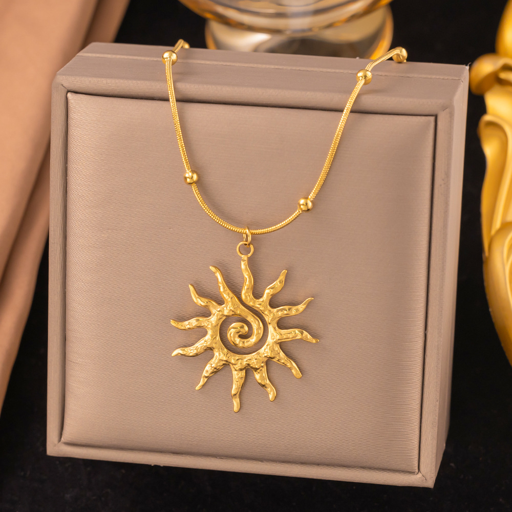 European and American Summer Stainless Steel MiG Spiral Hip Hop Sun Pendant Titanium Steel Pearl Chain Versatile Fashion Ladies Necklace