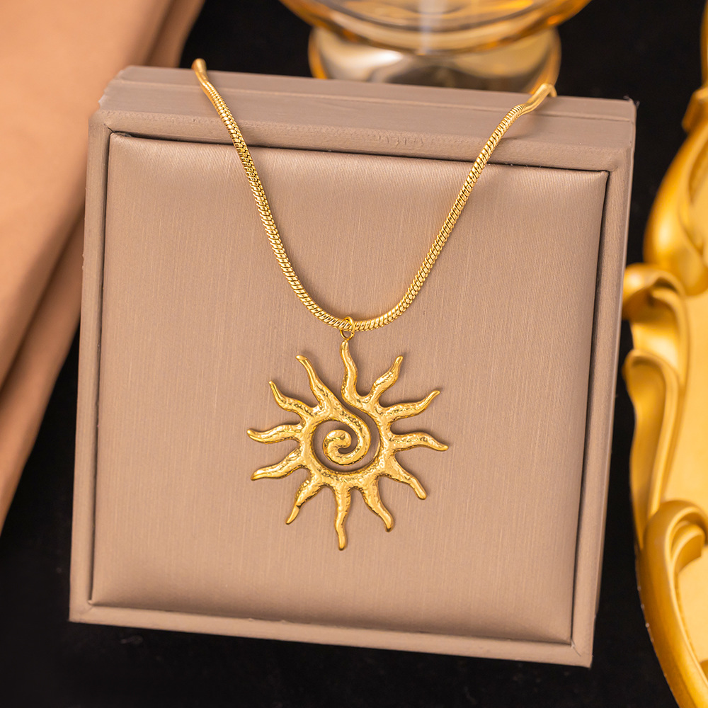 • European and American Summer Stainless Steel MiG Spiral Hip Hop Sun Pendant Titanium Steel Pearl Chain Versatile Fashion Ladies Necklace