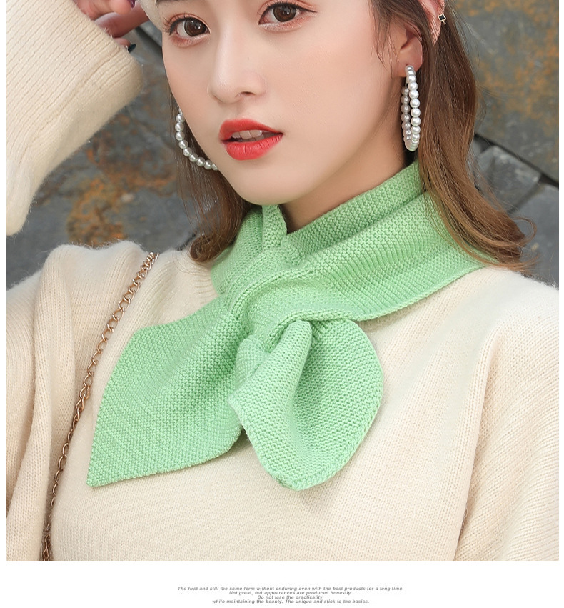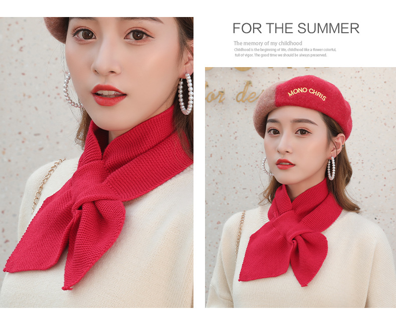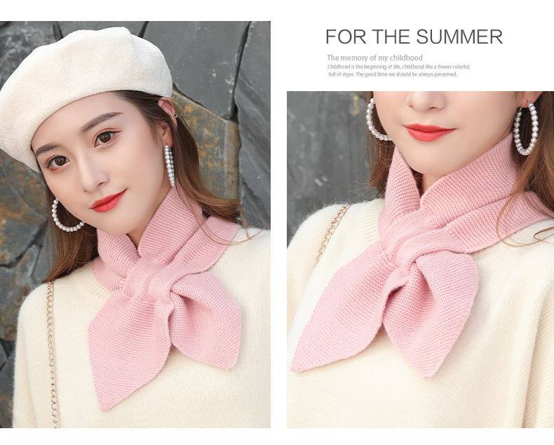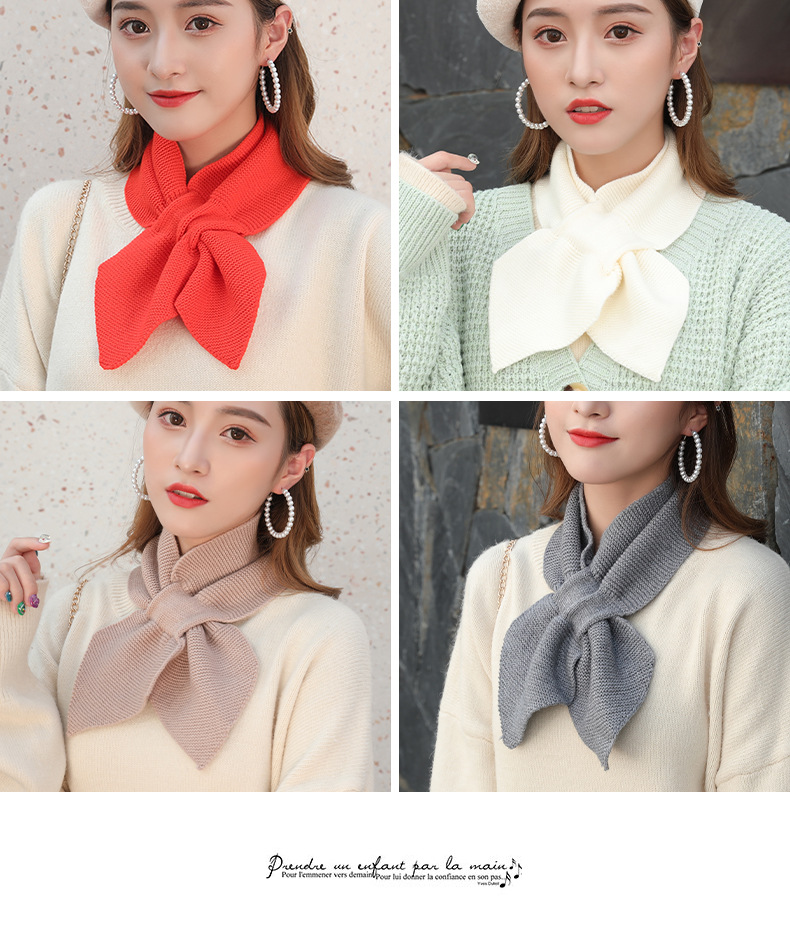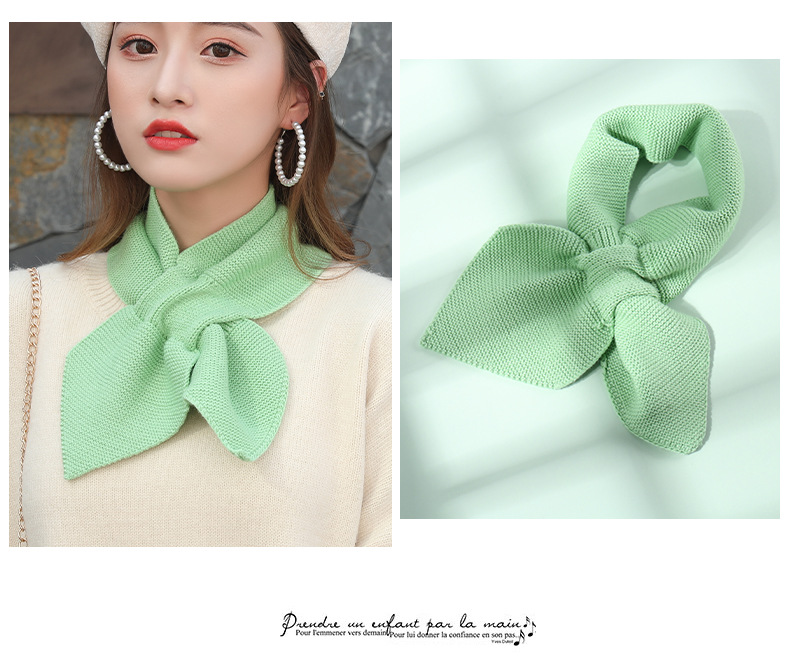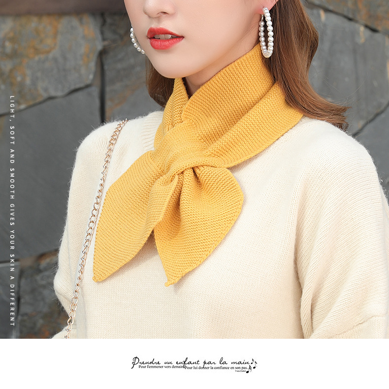 Evening and evening same style ins South Korea knitted wool collar cross fishtail scarf bow small scarf for women autumn and winter