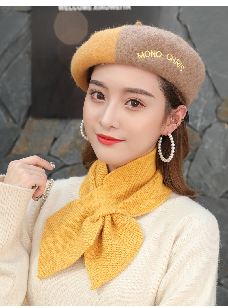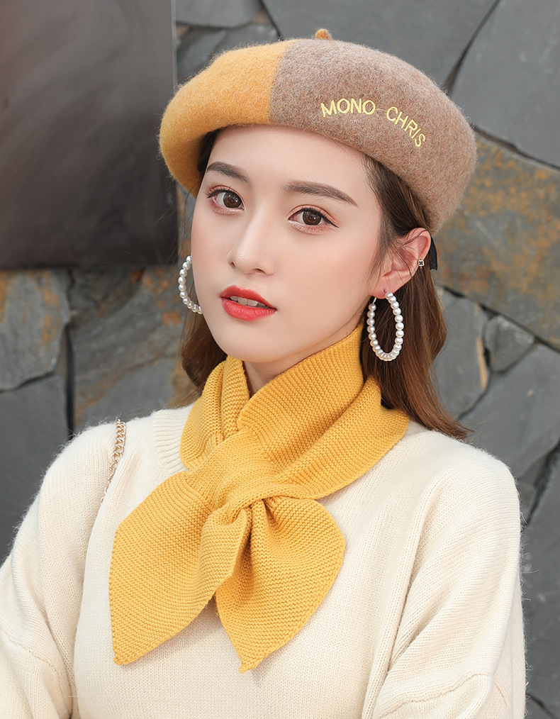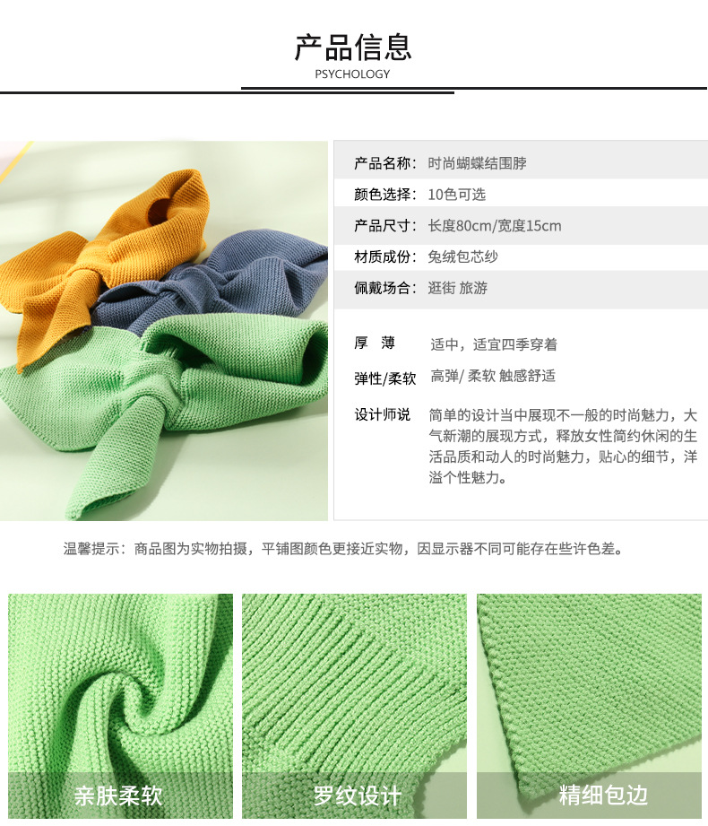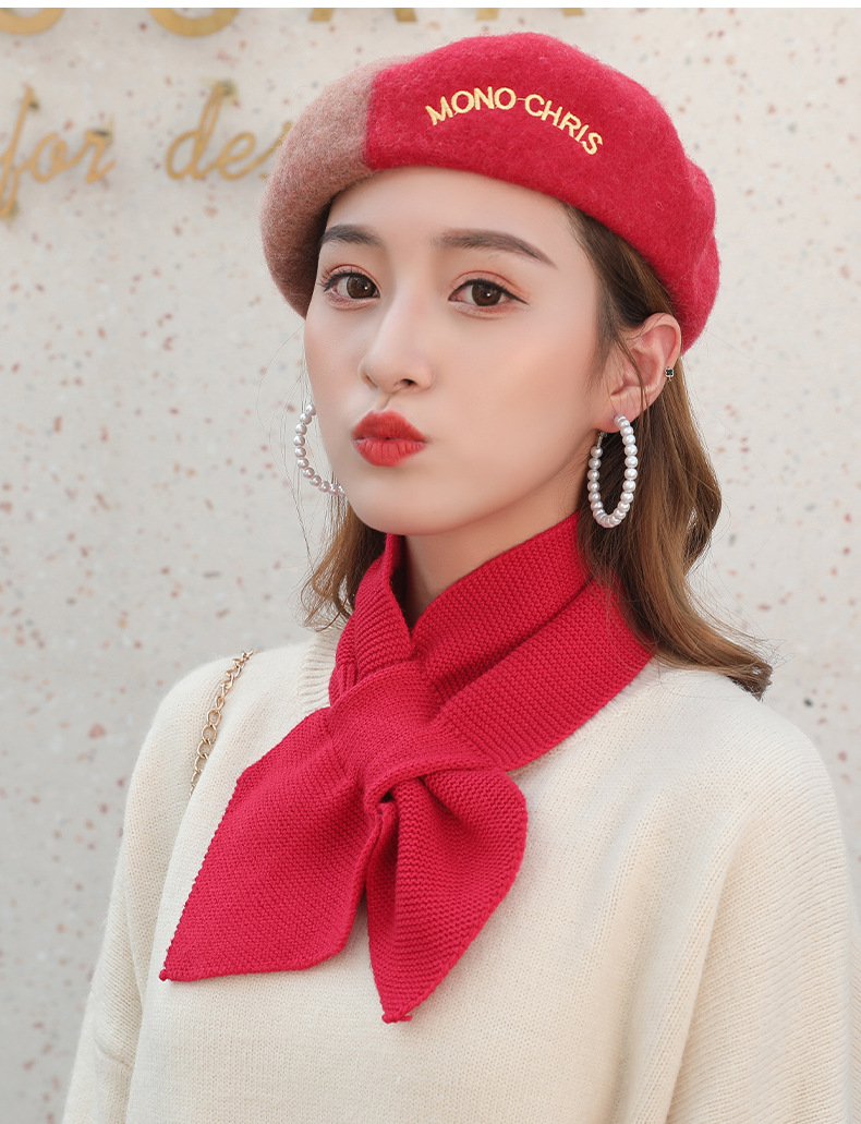 Evening and evening same style ins South Korea knitted wool collar cross fishtail scarf bow small scarf for women autumn and winter