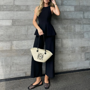 • Fd005 2024 Cross-Border Autumn and Winter New Women's Elegant Pure Color Bell Sleeve Medium Length Beach Cotton and Linen Dress