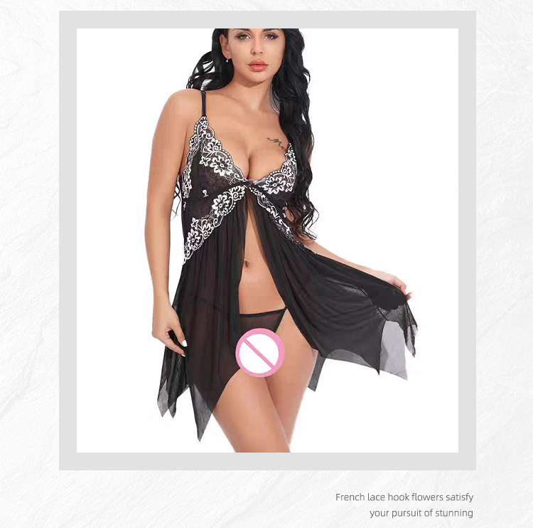 • Foreign trade AliExpress supply Europe and the United States sexy suspenders lace imitation silk backless sexy pajamas factory outlets