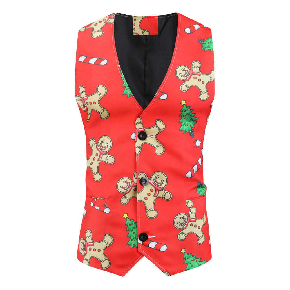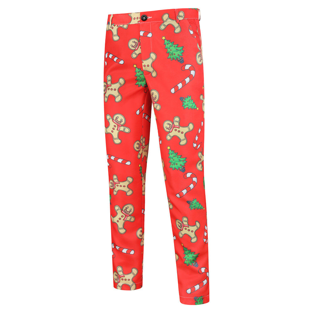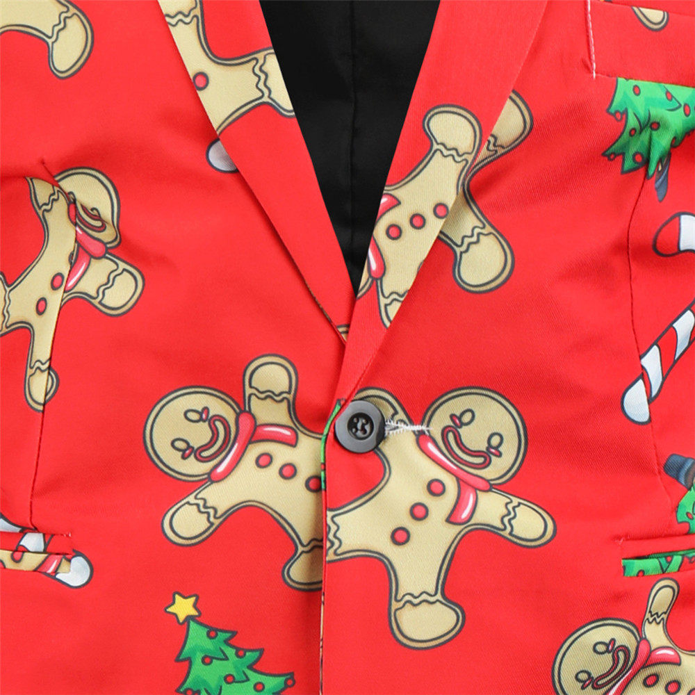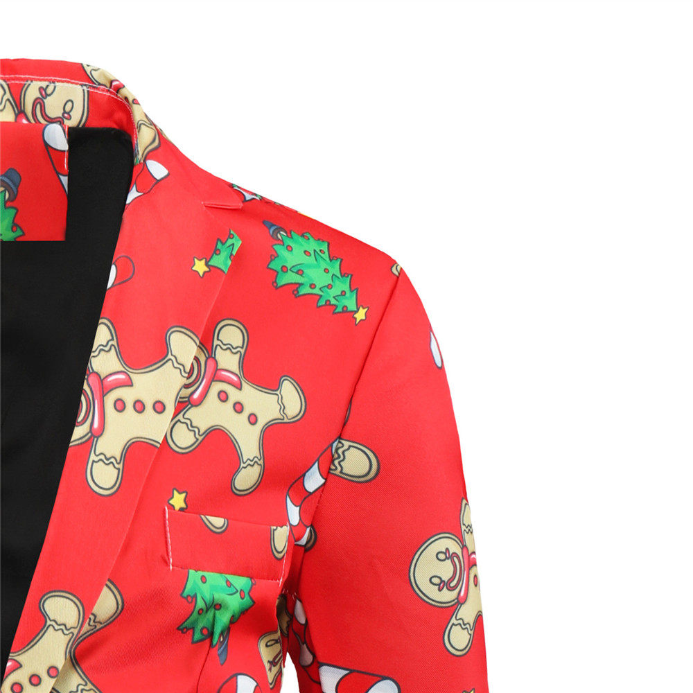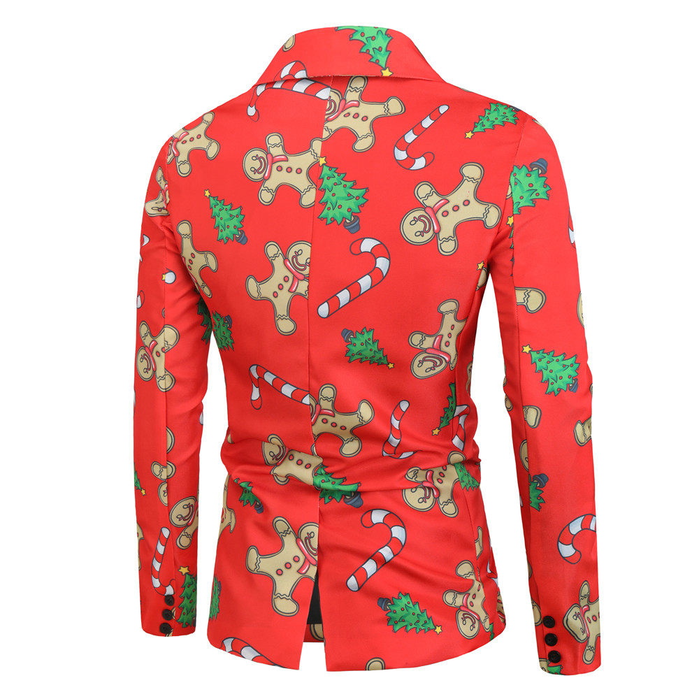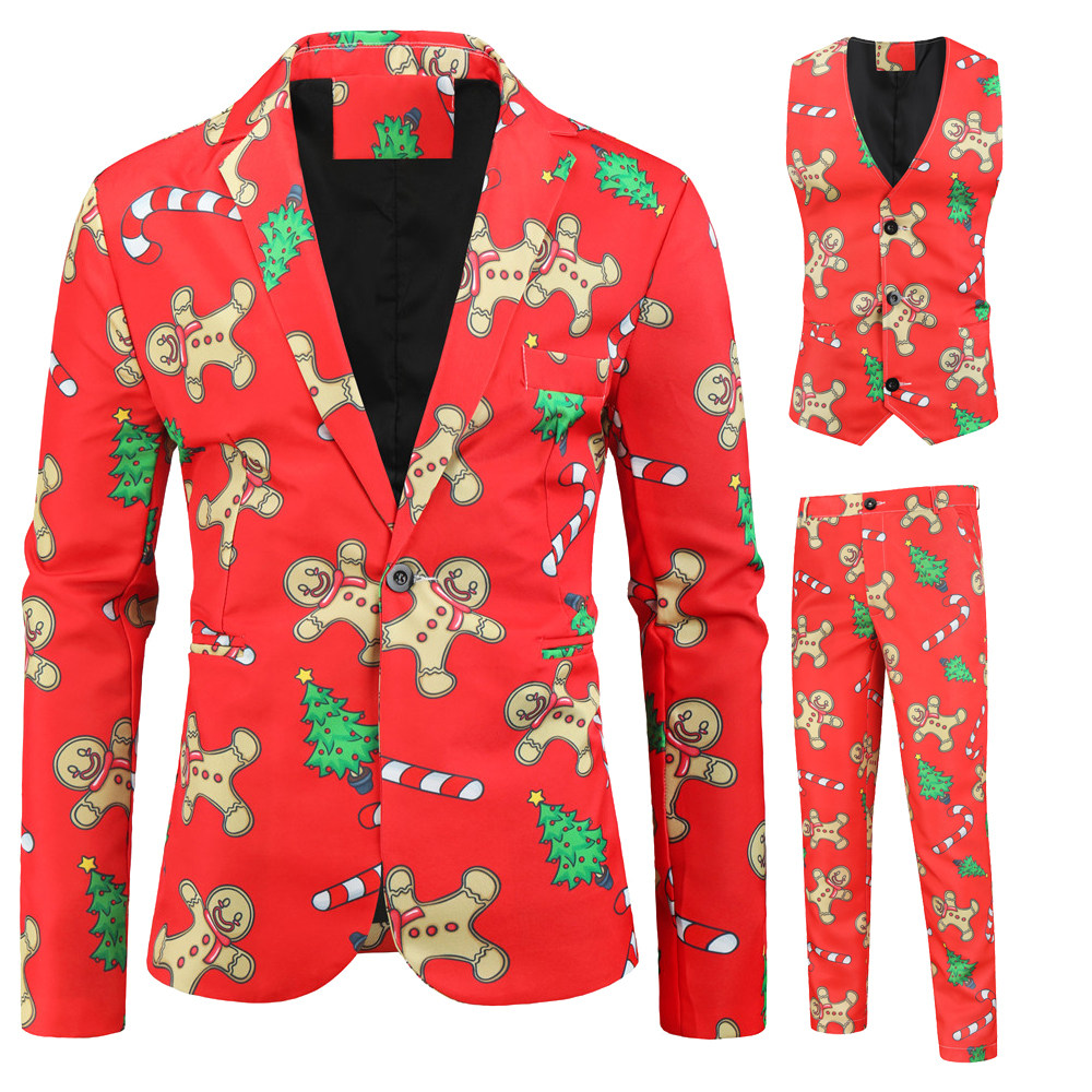 • Foreign Trade New Men's Casual Suit Three-Piece Set Christmas Printed Suit Men's Slim-Fit Flat Barge Collar Suit