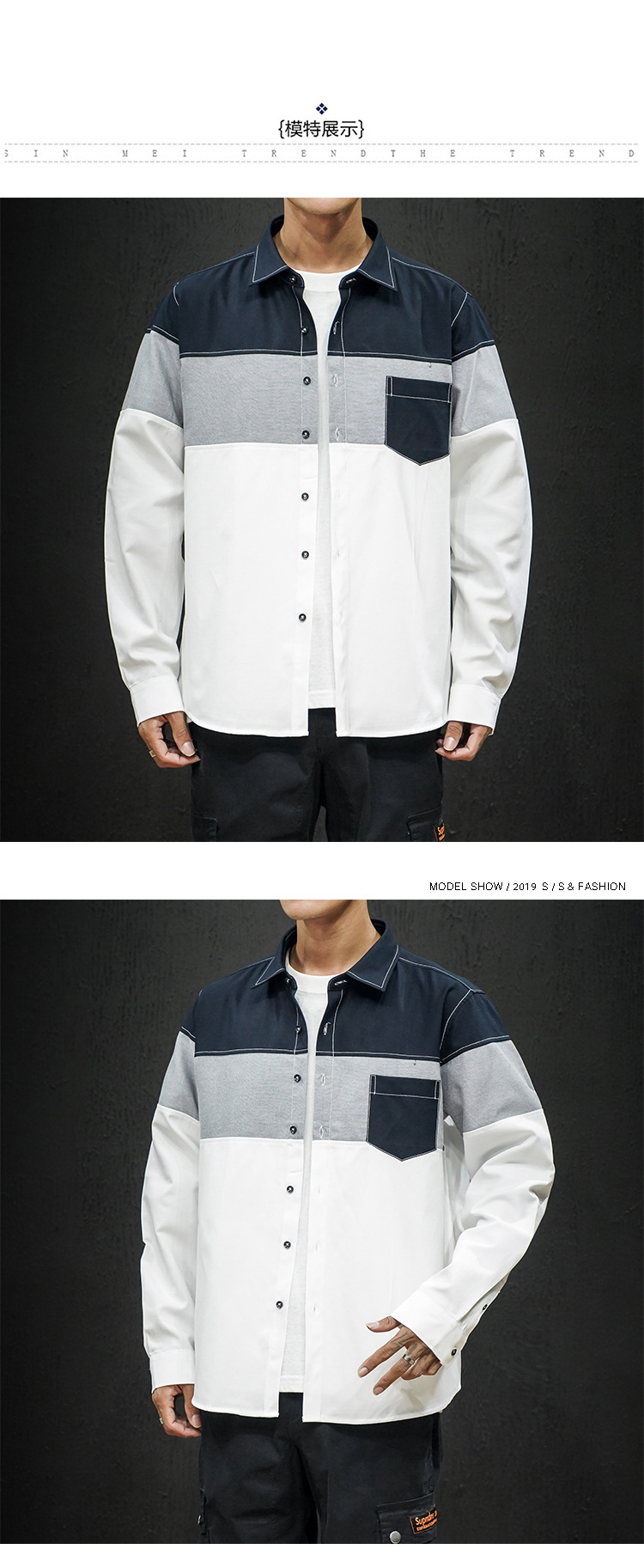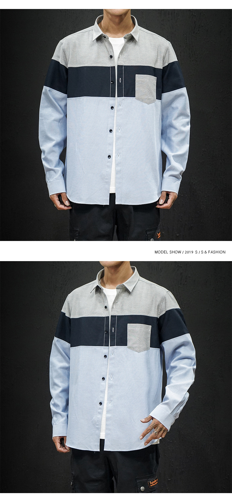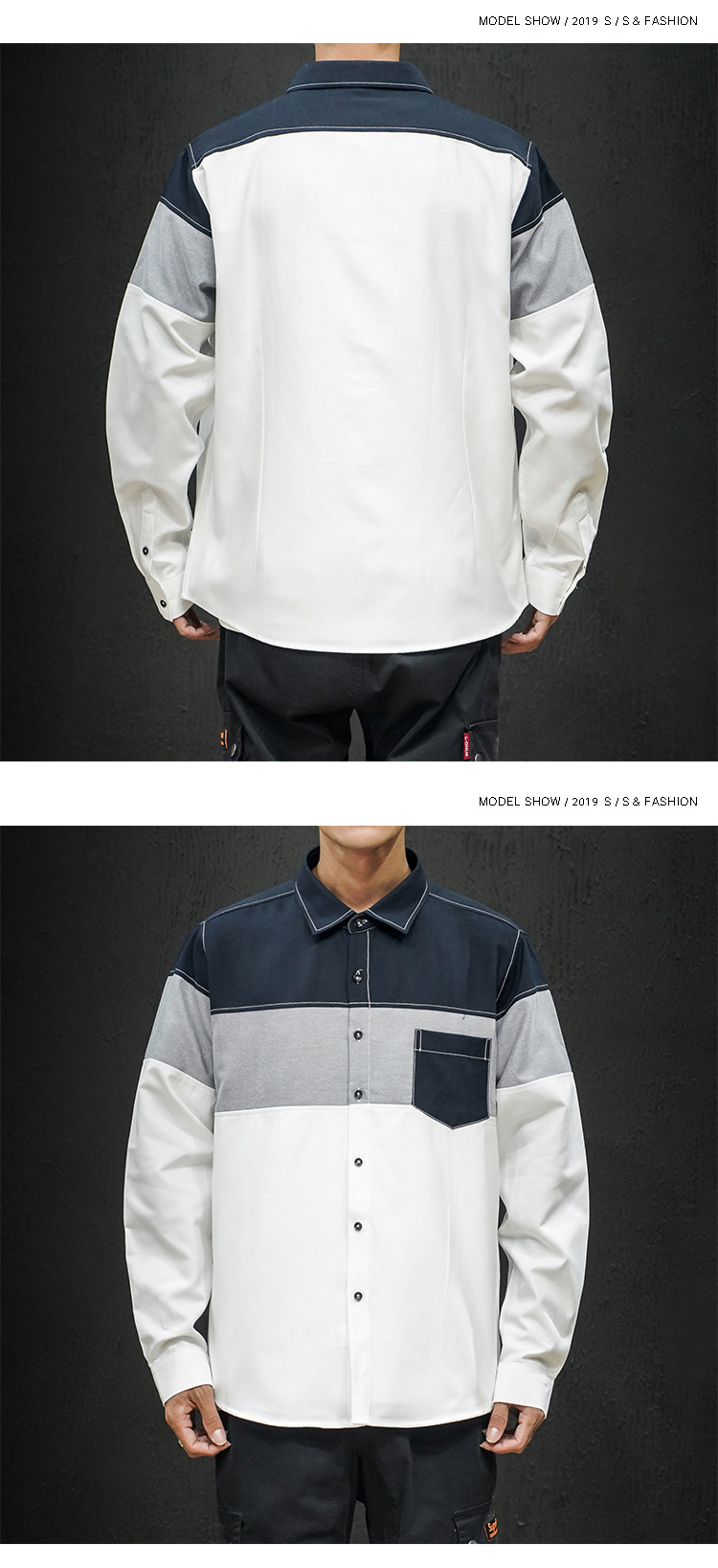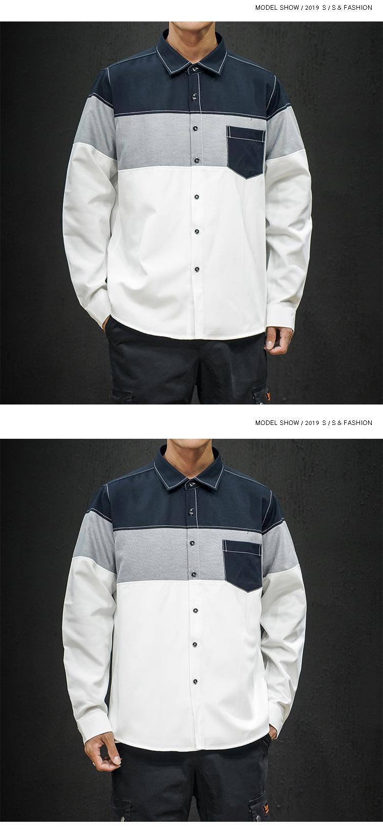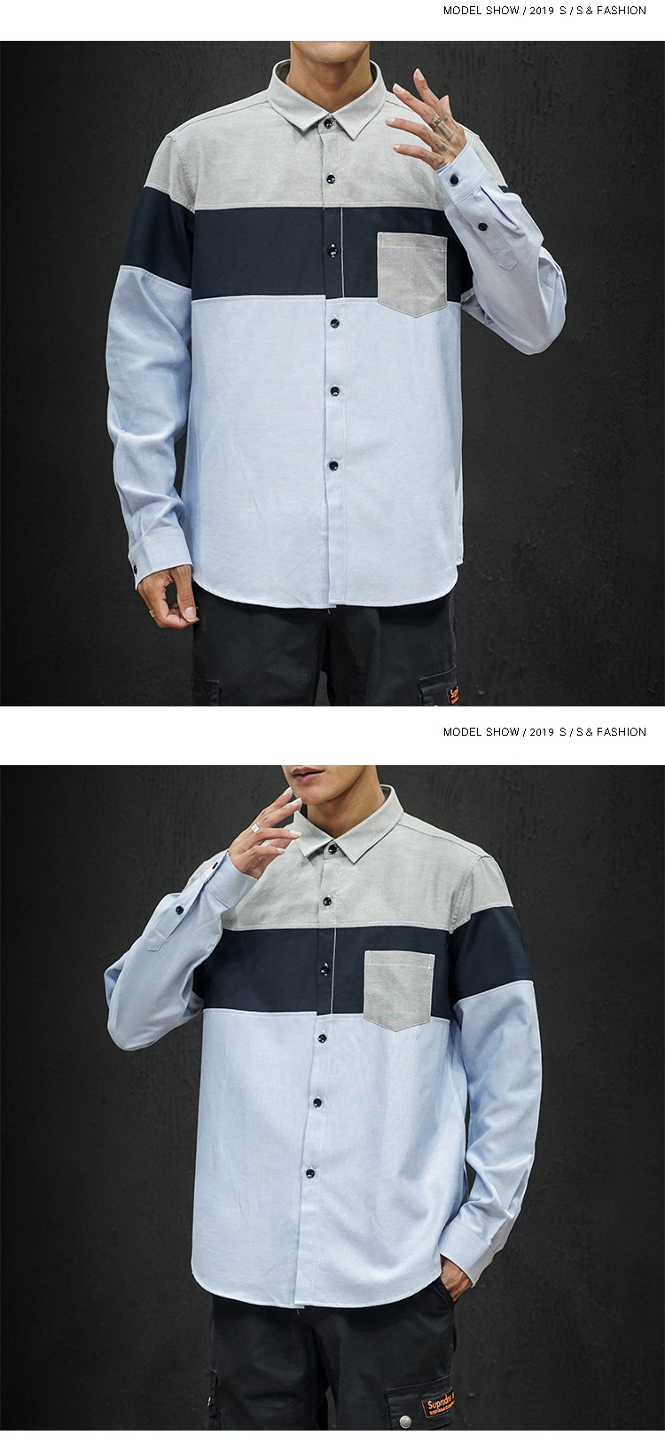 • Foreign Trade Spring New Men's Shirt Stitching Casual Long-sleeved Men's Slim-fit Pointed Collar Large Size Shirt