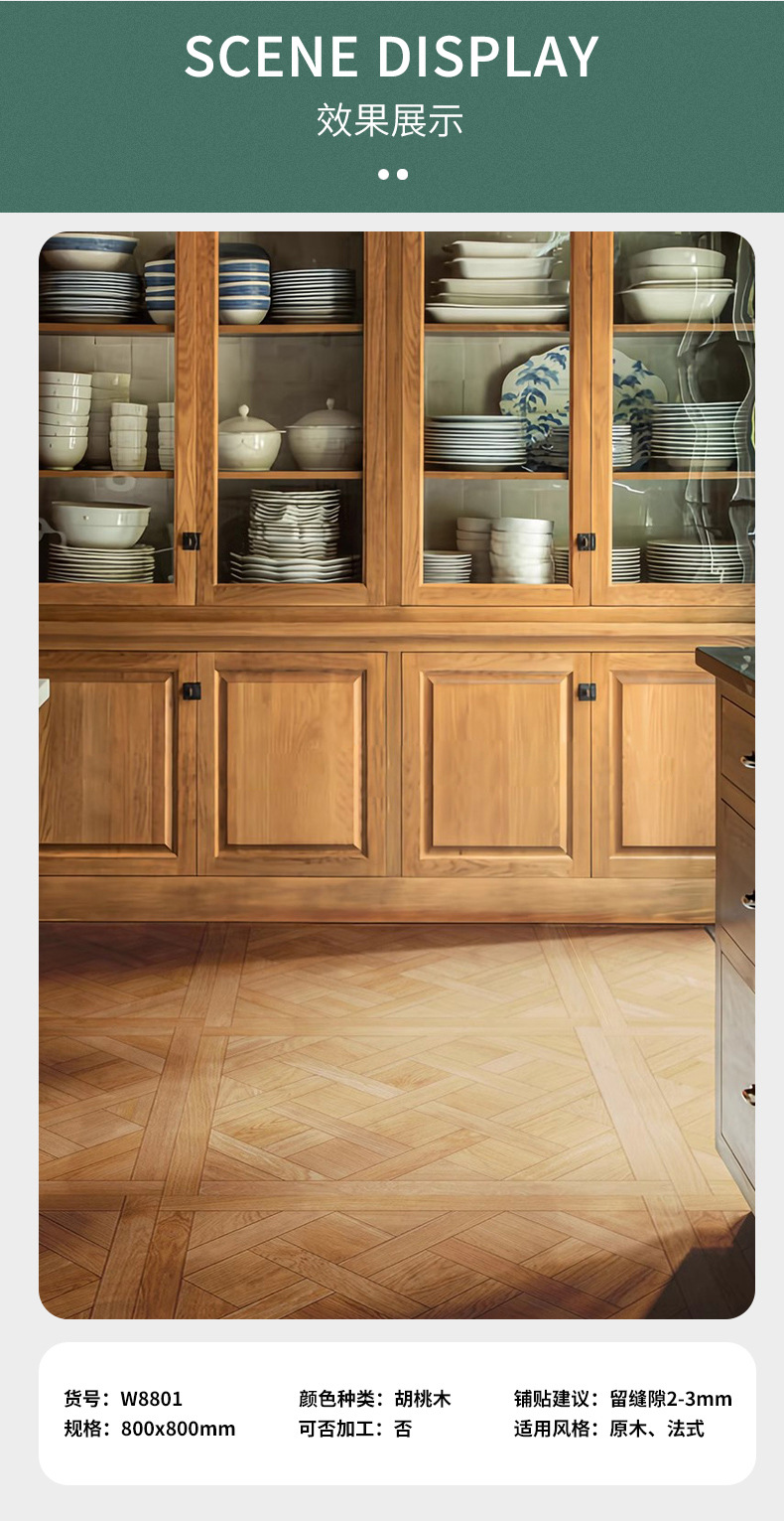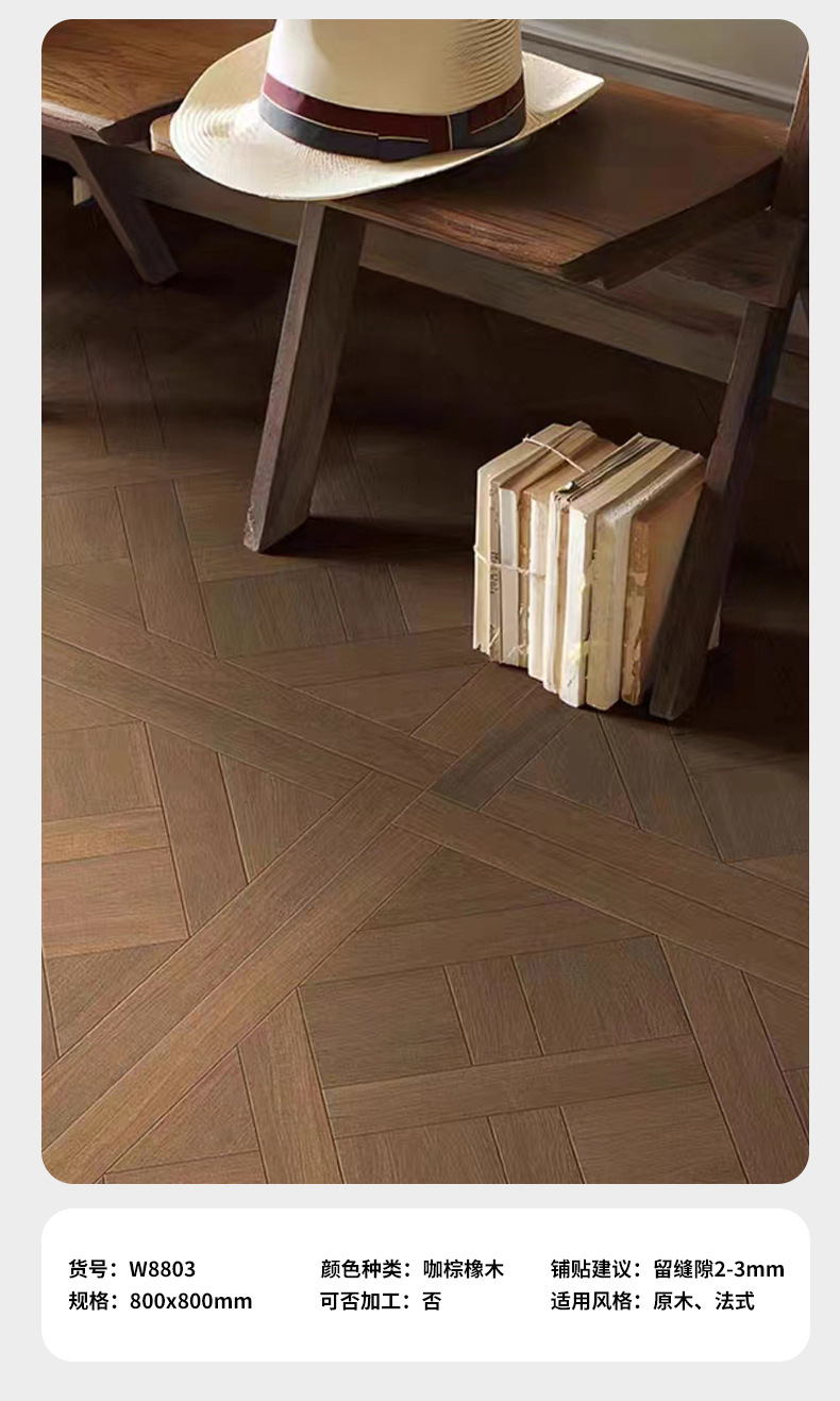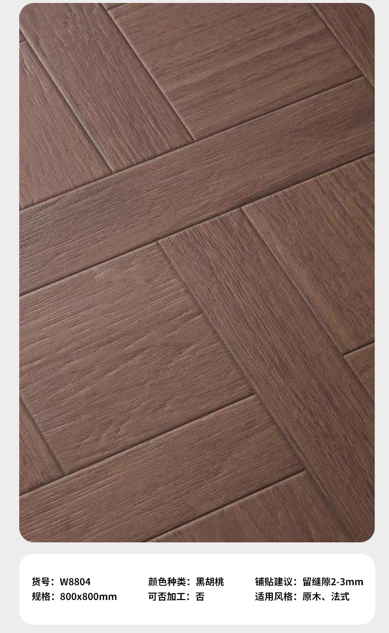 • French Versailles wood tile living room walnut floor tile mid-Ancient Nanyang style tile floor tile 800x800mm