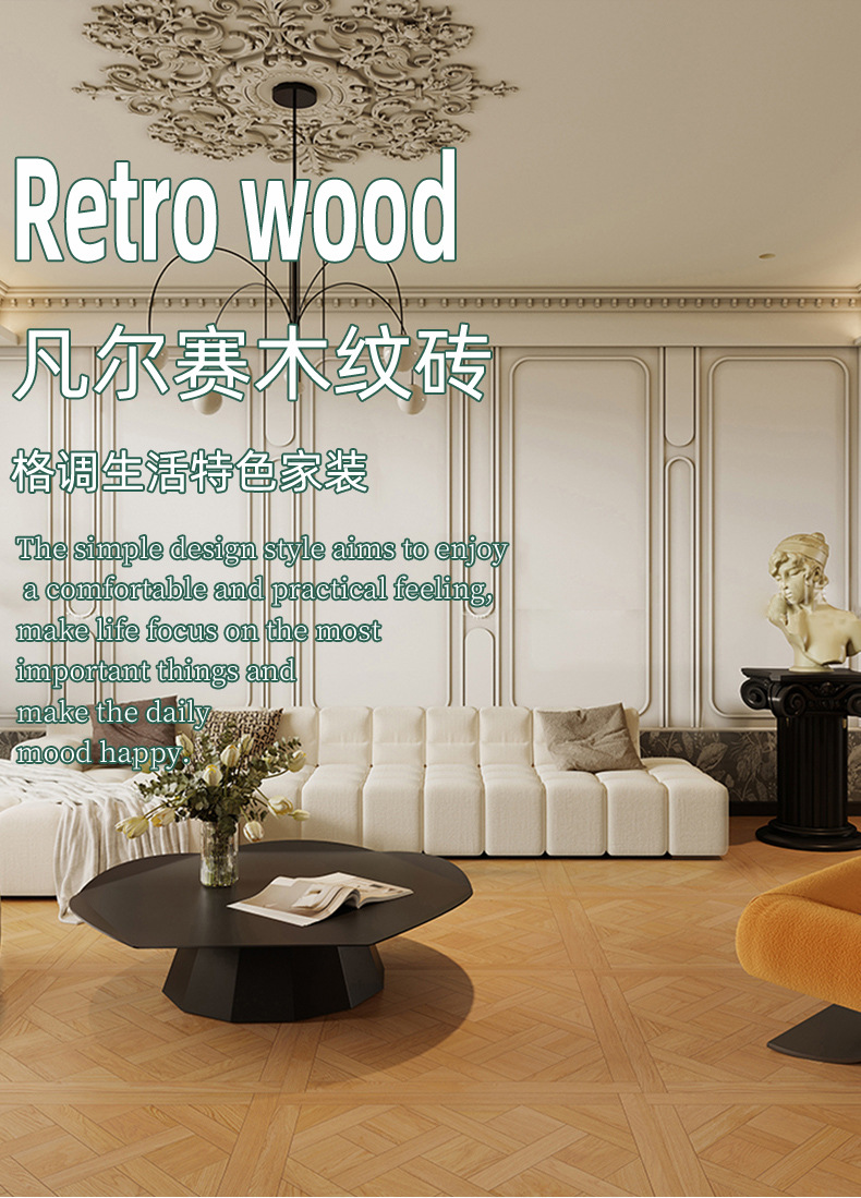 French Versailles wood tile living room walnut floor tile mid-Ancient Nanyang style tile floor tile 800x800mm