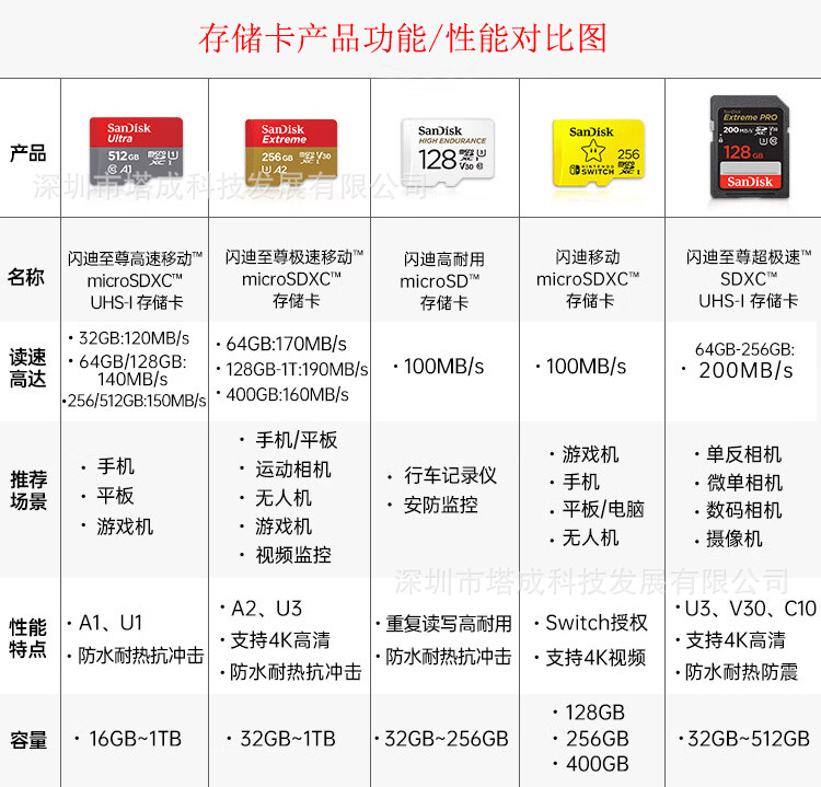• Sandisk Tf Memory Card 64g 128g 256g 512g Drone Recorder Action Camera Memory Card Wholesale