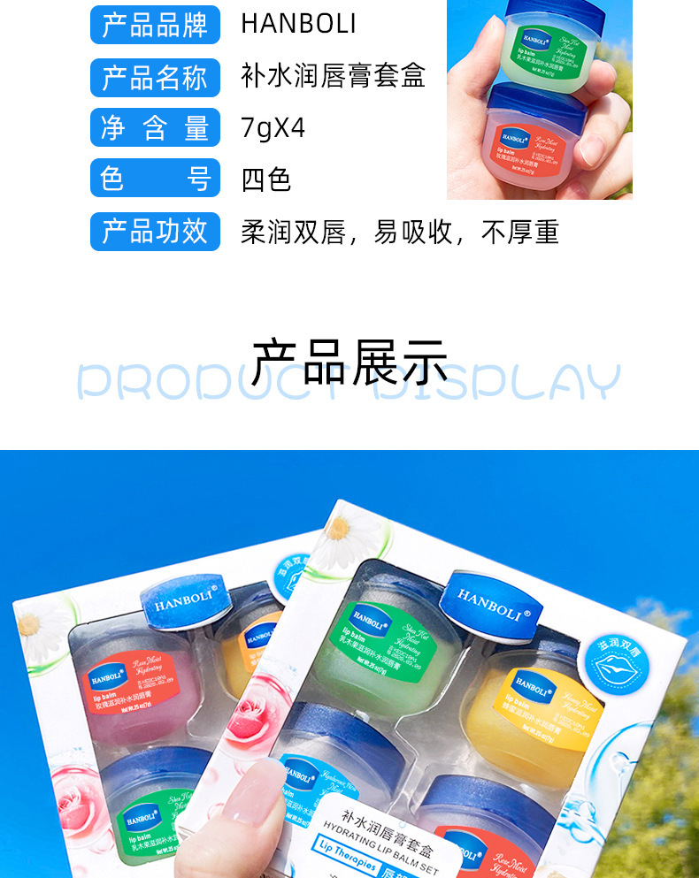• Hanboli hyaluronic acid Lip Balm Kit moisturizing moisturizing lip mask men and women Lip Care Anti-cracking lip balm