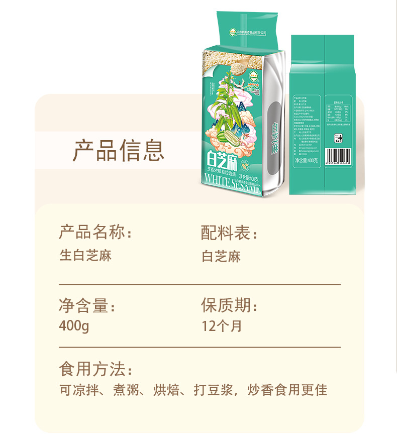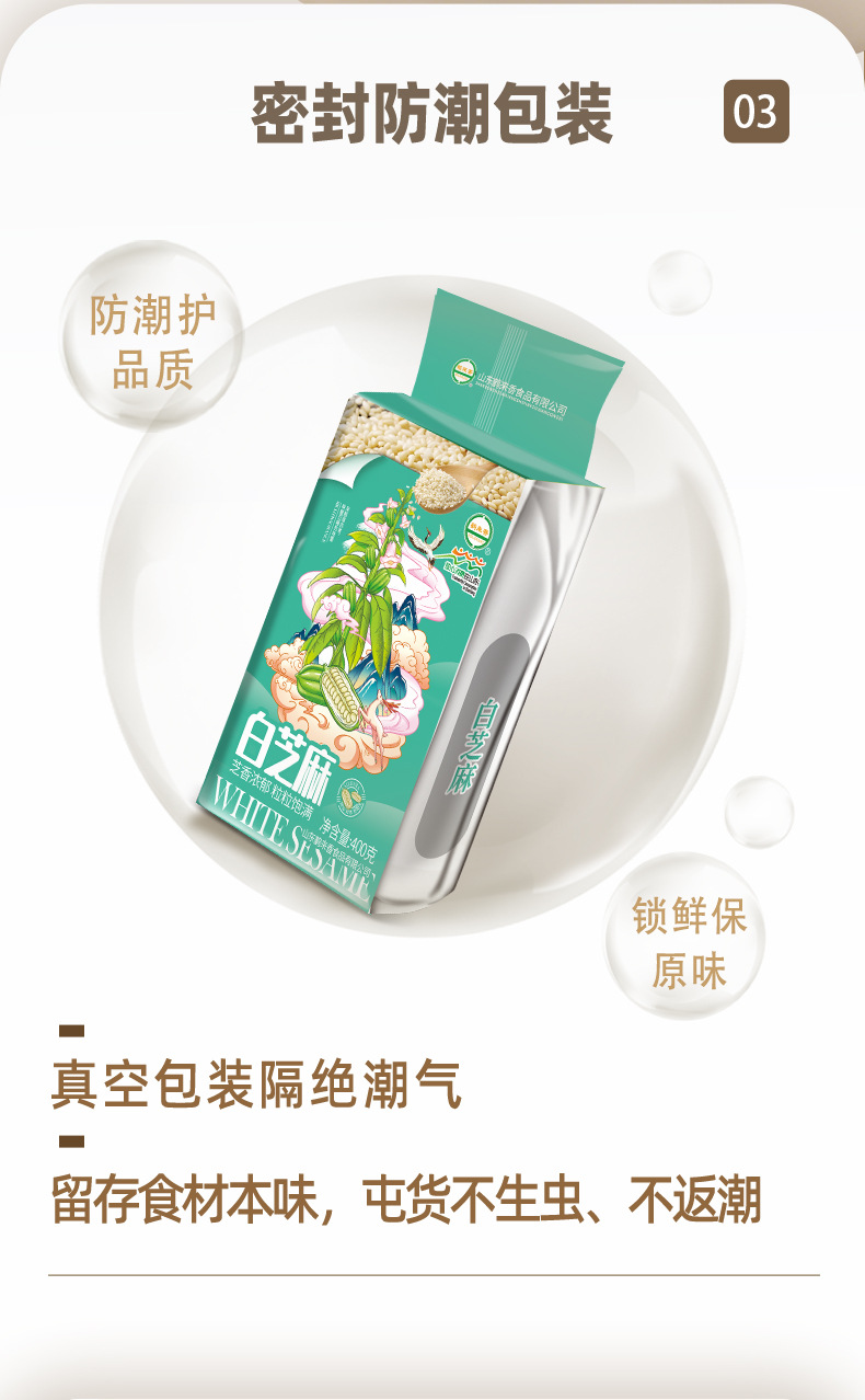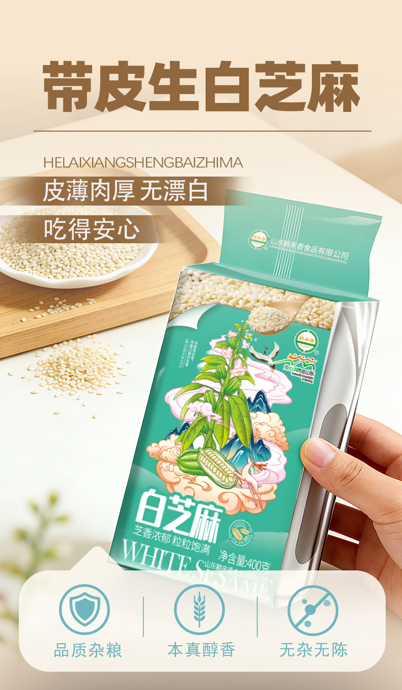 • White Sesame 400g Vacuum Packed Grinding Oil Grinding Sauce Raw Material No Impurity Factory Direct Supply Wholesale OEM Helaxiang