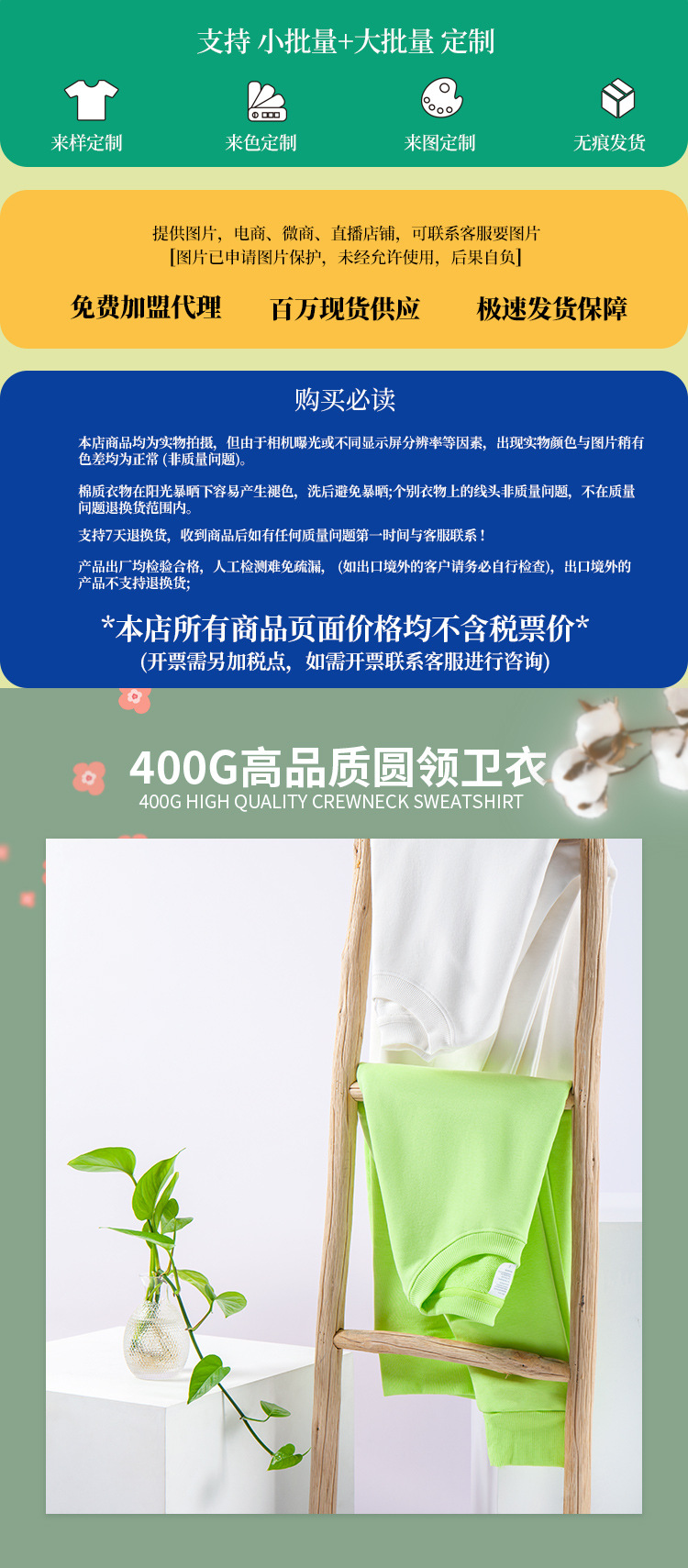 • 400g Round Neck Heavyweight Sweatshirt for Men and Women Loose Off-Shoulder Oversize Trendy Brand Large Terry Pullover Sweatshirt Customization