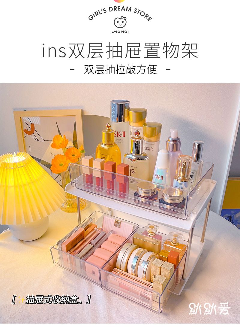 • ins Cosmetic Storage Box Desktop Dressing Table Transparent Acrylic Perfume Drawer Type Skin Care Japanese Style Storage Rack