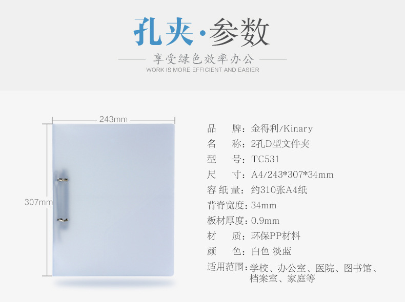 Jindeli large two-hole d-clip punch loose-leaf folder A4 transparent insert double-hole file data plastic wear
