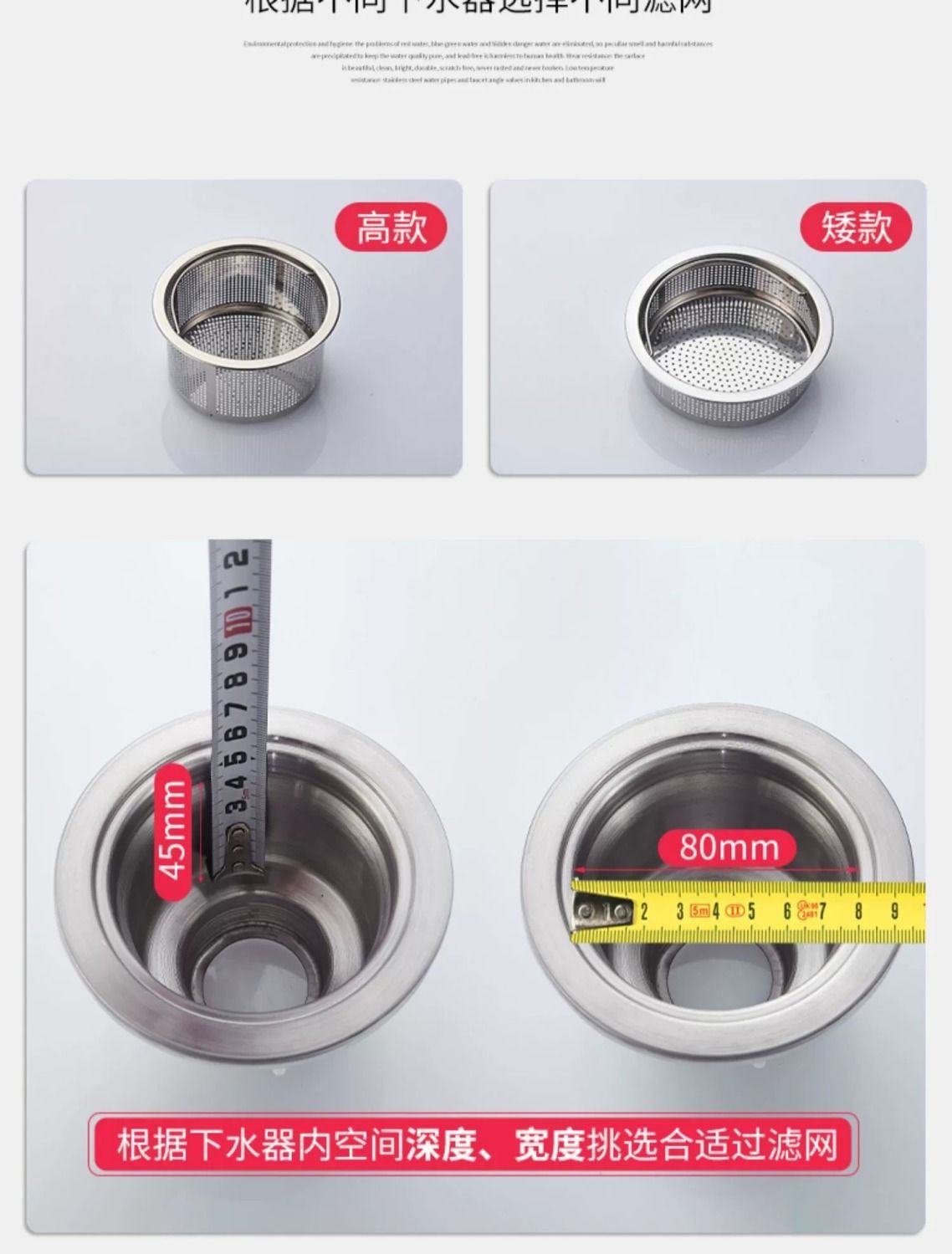 Kitchen sink garbage filter net vegetable basin funnel dishwashing sink stainless steel 304 sewer cage cover device
