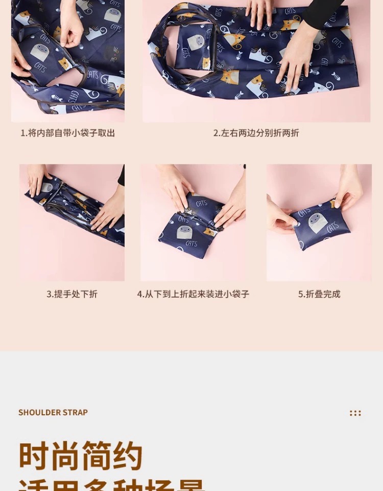 • Large Cute Cartoon Foldableable Satchel Supermarket Shopping Bag Grocery Bag Grocery Shopping Bag Large Capacity Handbag