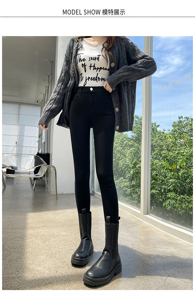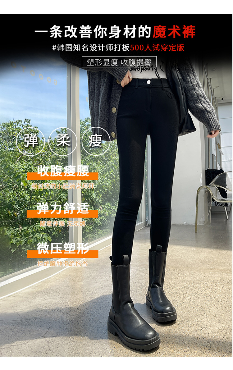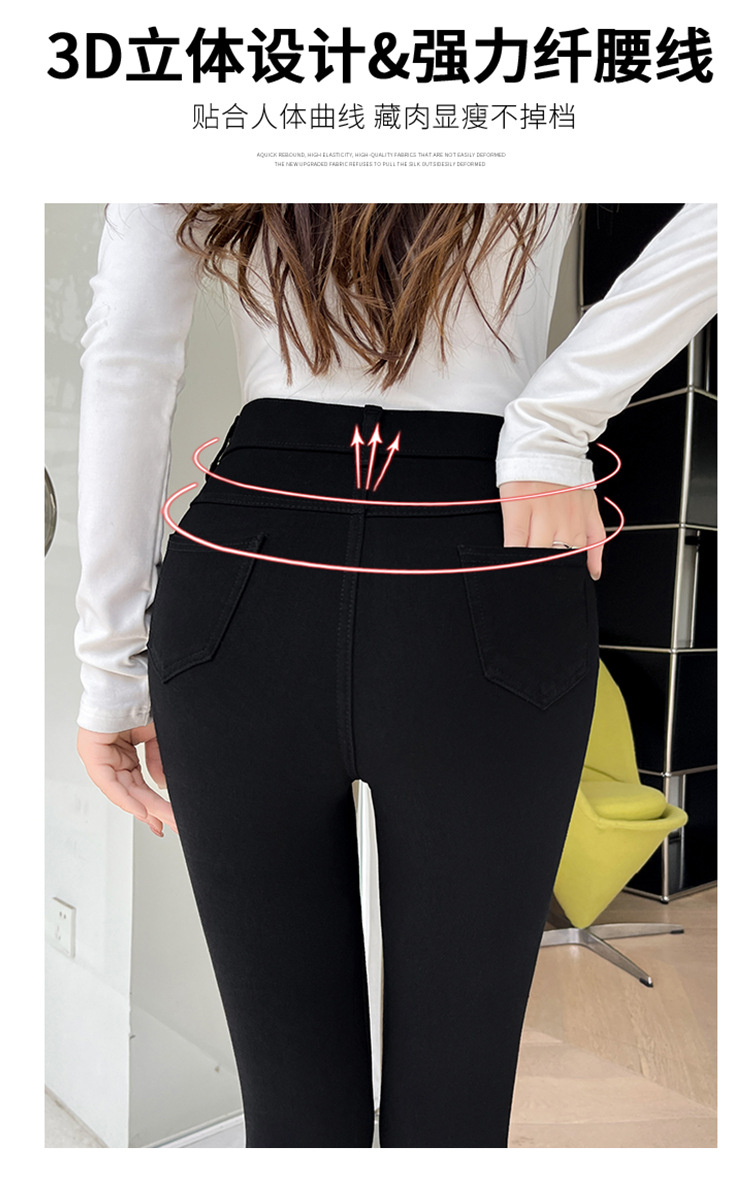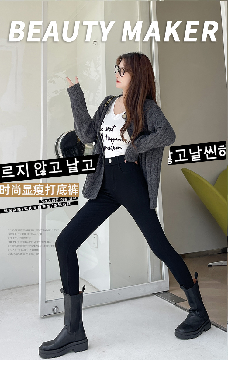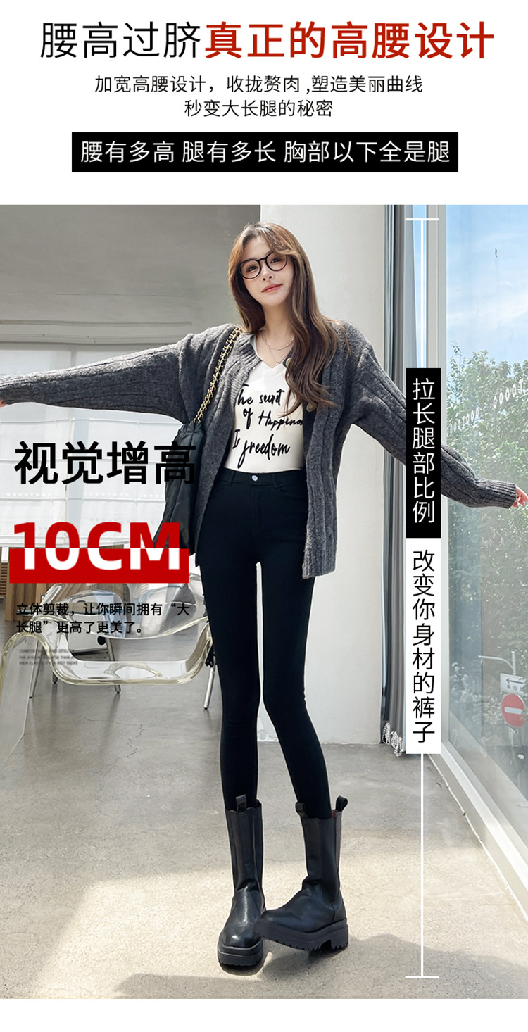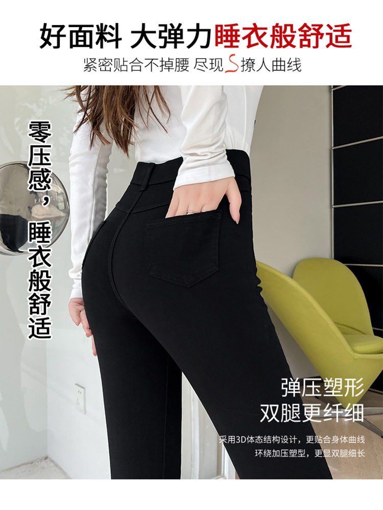 Women's Leggings for Outerwear, Spring and Autumn Style, Thin, High-Waisted, Slimming, Tight-Fitting, Stretchy, Form-Fitting, Pencil-Cut, Versatile Black Pants