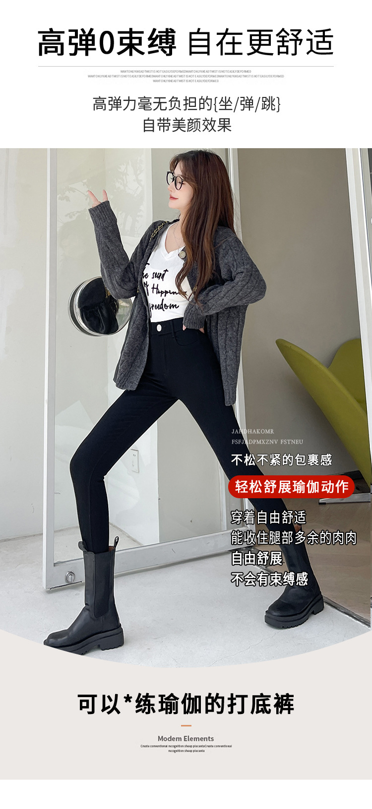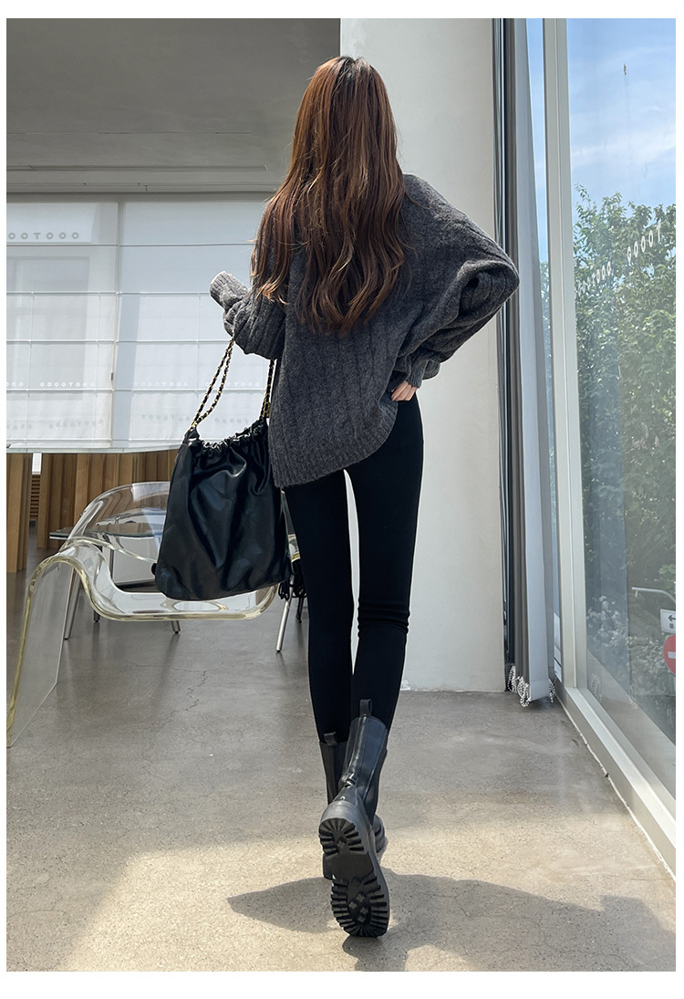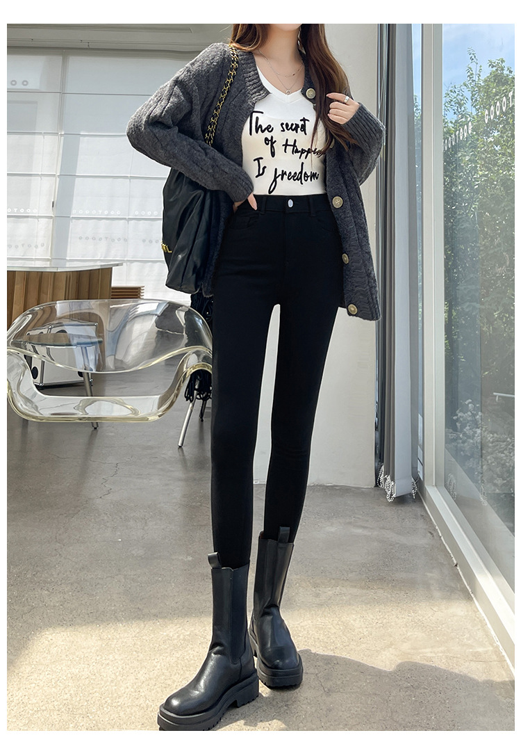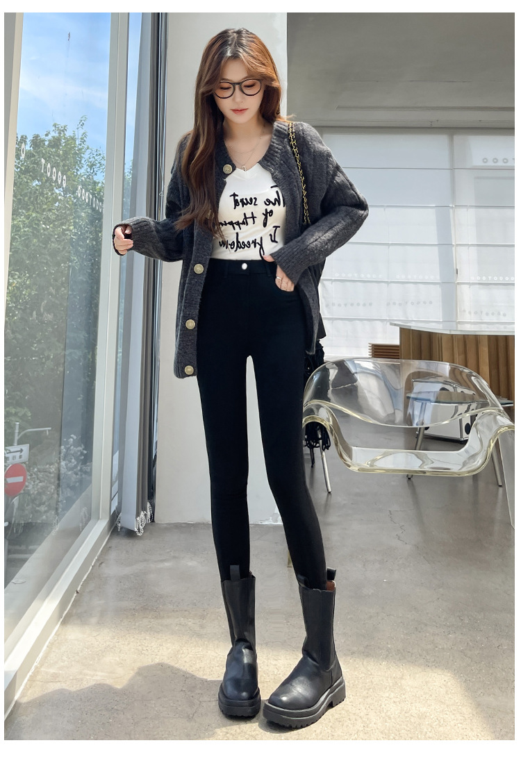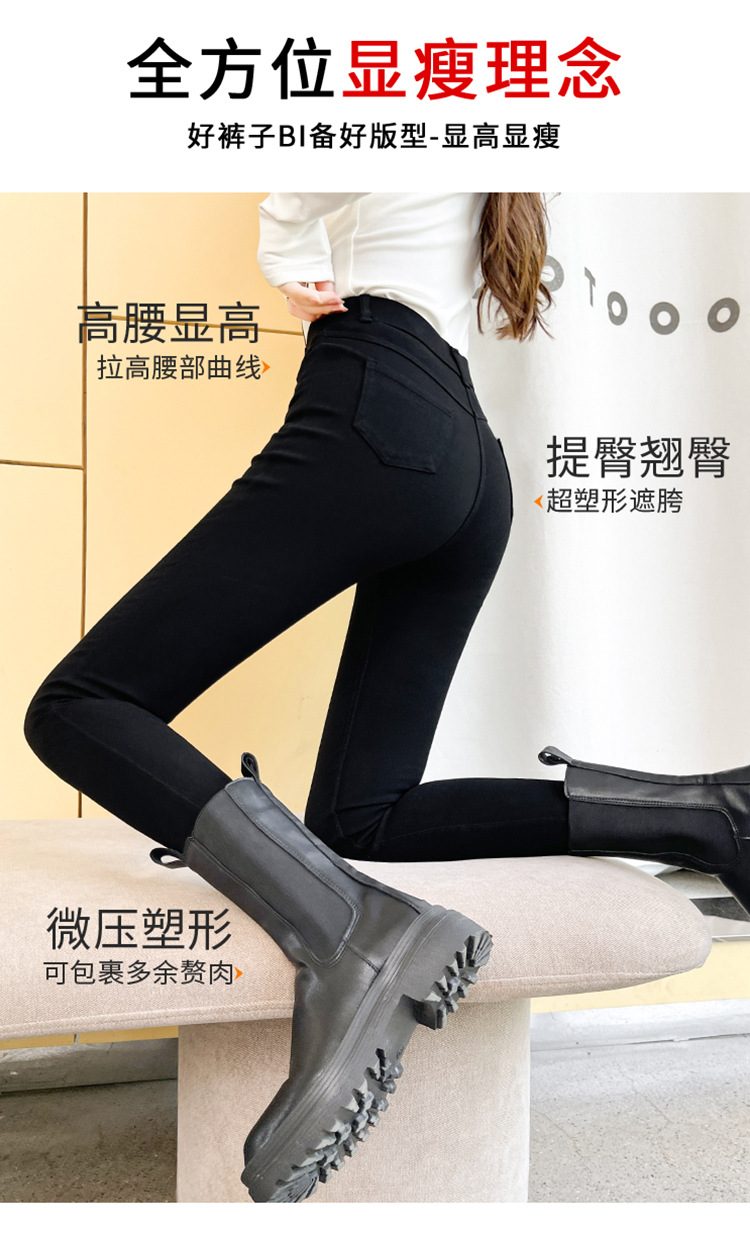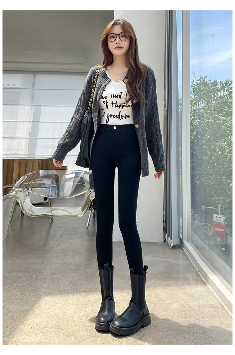 Women's Leggings for Outerwear, Spring and Autumn Style, Thin, High-Waisted, Slimming, Tight-Fitting, Stretchy, Form-Fitting, Pencil-Cut, Versatile Black Pants