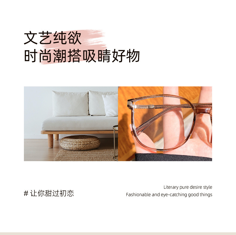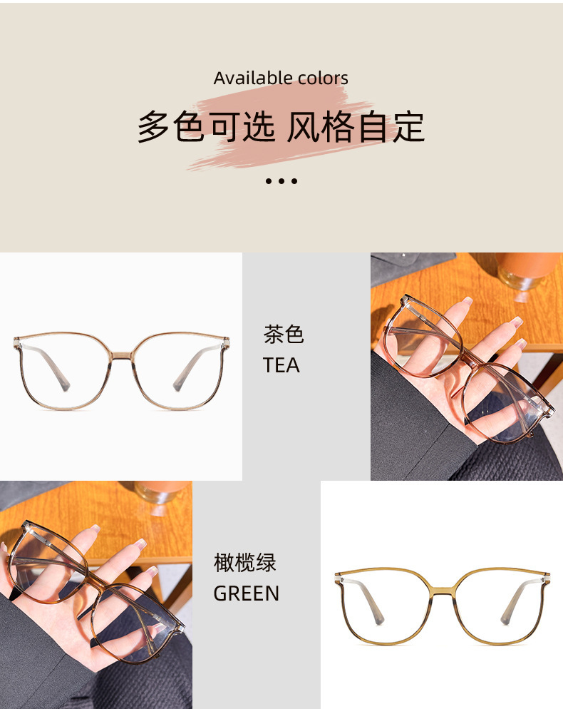 Live Broadcast New Plain Reading Glasses for Women, Transparent Tea Frame, High-Definition Anti-Blue Light Reading Glasses, Big Face Slimming Look Flat Glasses