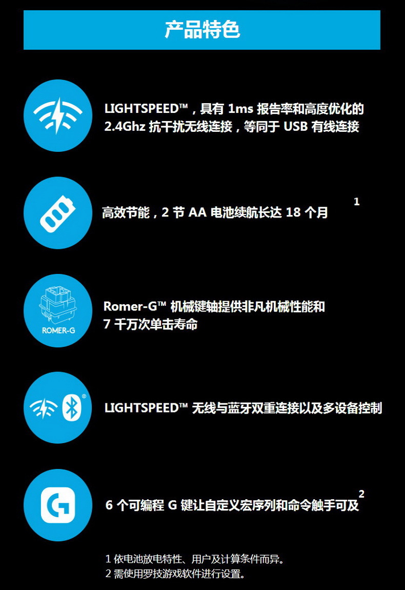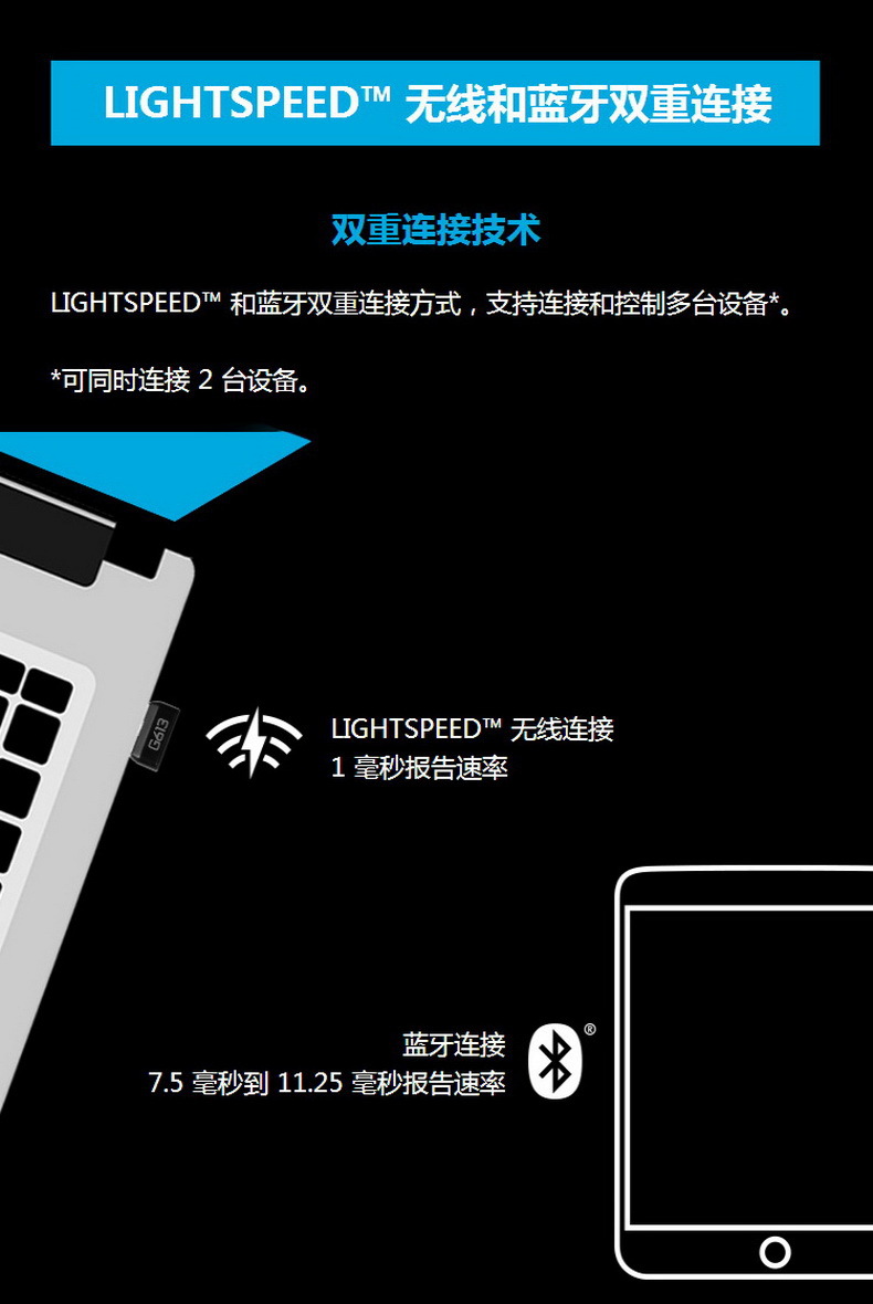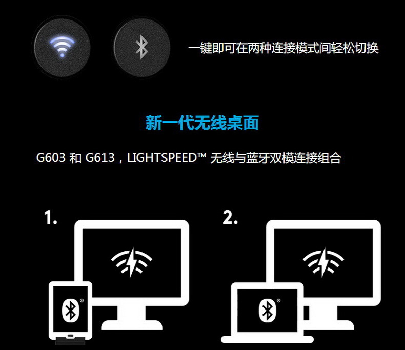 G613无线机械键盘支持蓝牙模式,可以轻松连接手机和平板等移动设备.相应的,G613键盘附送一个数码设备支架.