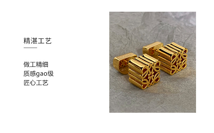 Luo Jia same style brass gold-plated solid stud earrings female temperament light luxury niche design sense high quality European and American earrings batch