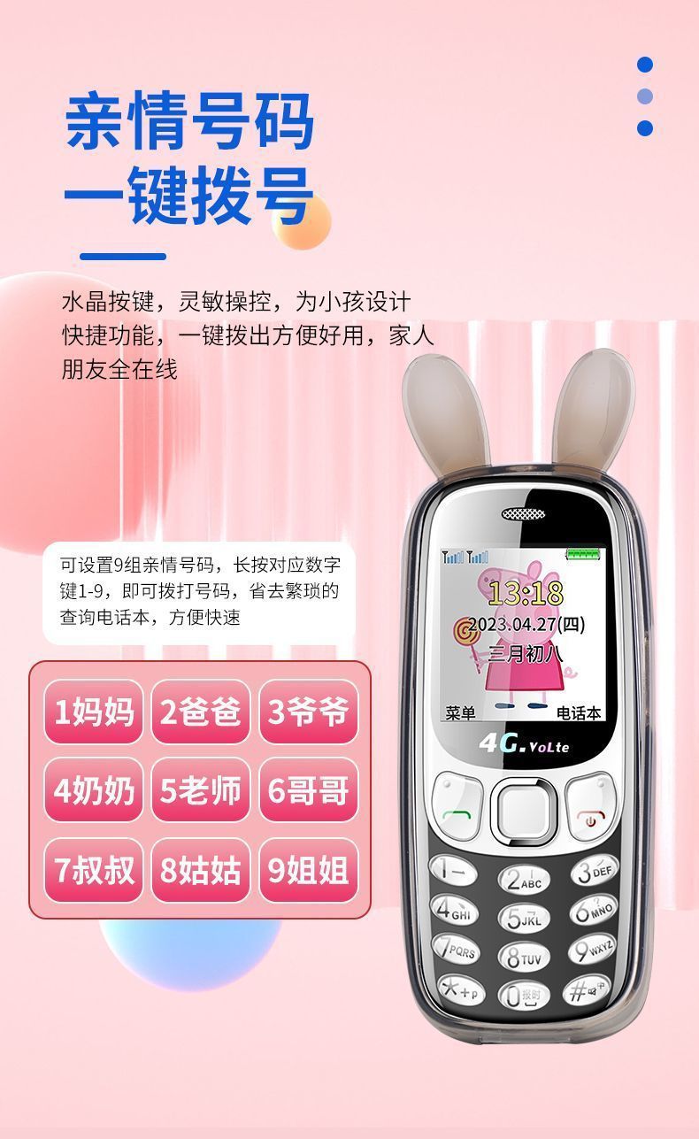 【4g/5g full network compatible peppa pig mini board】genuine standard 1000mah - location tracking - class disabled - pink