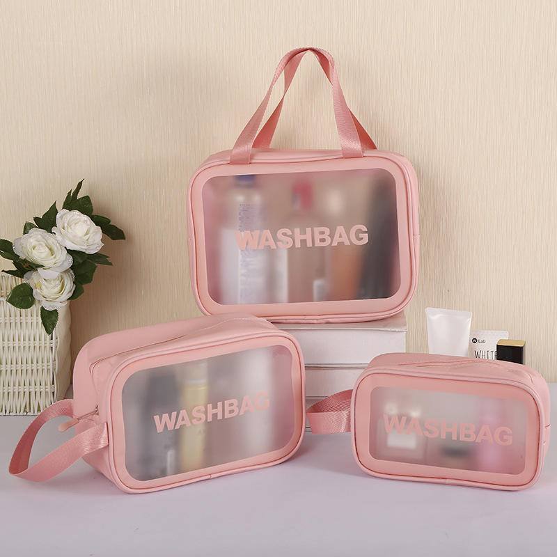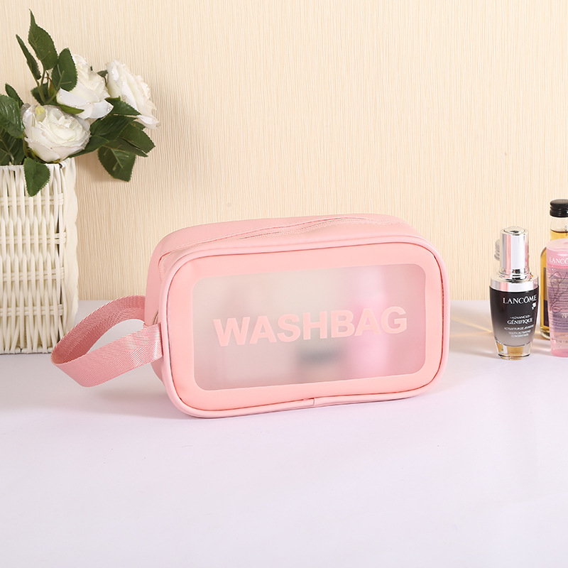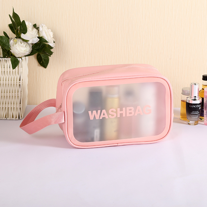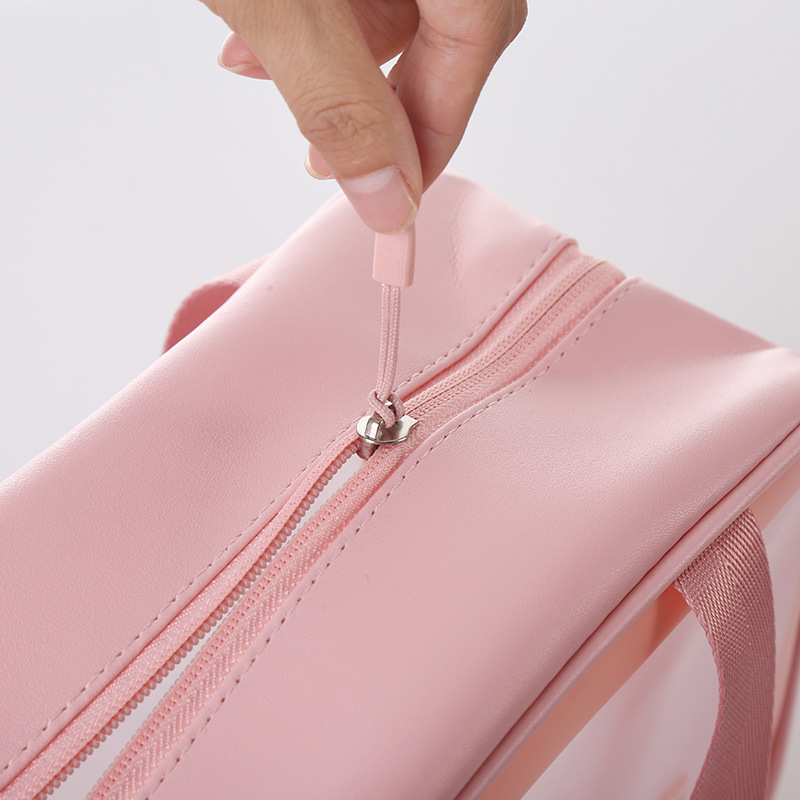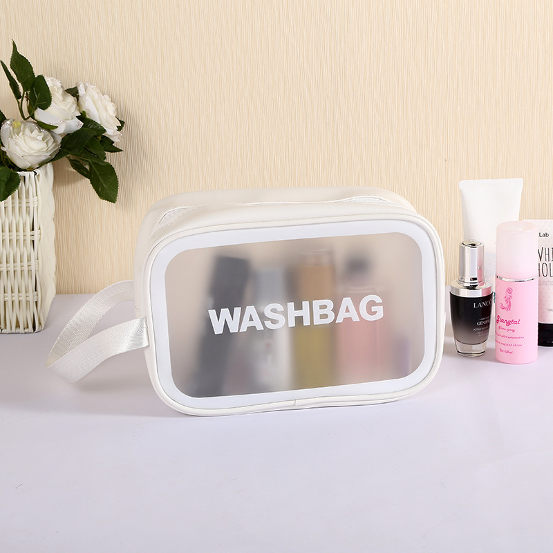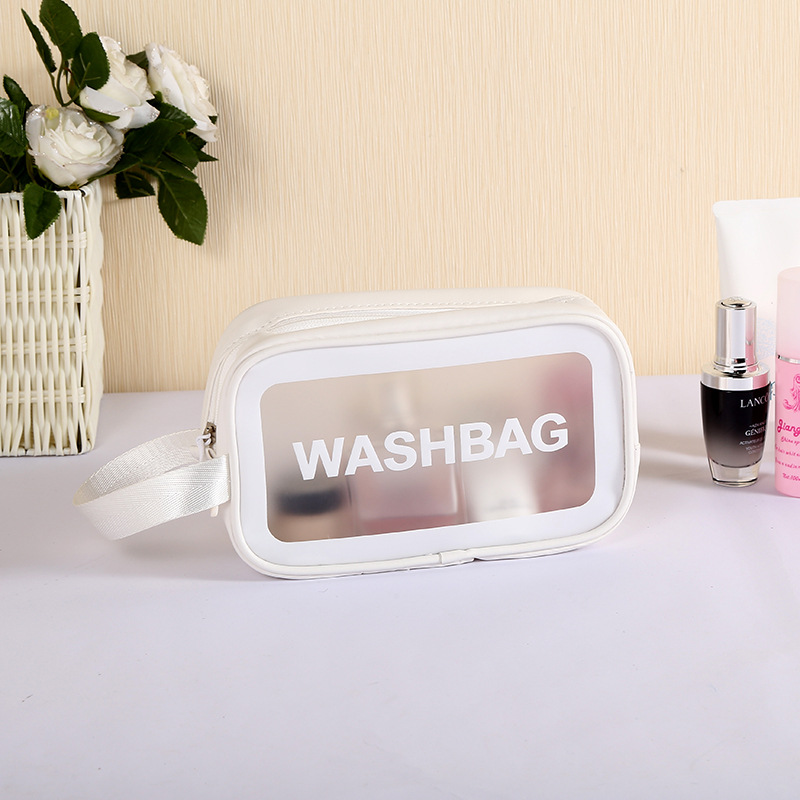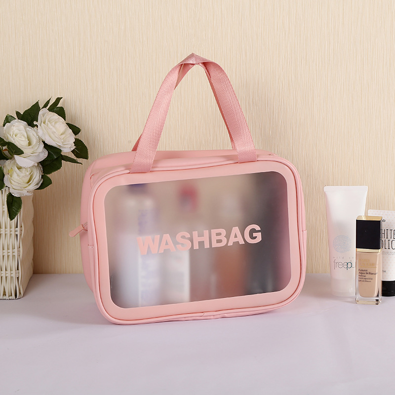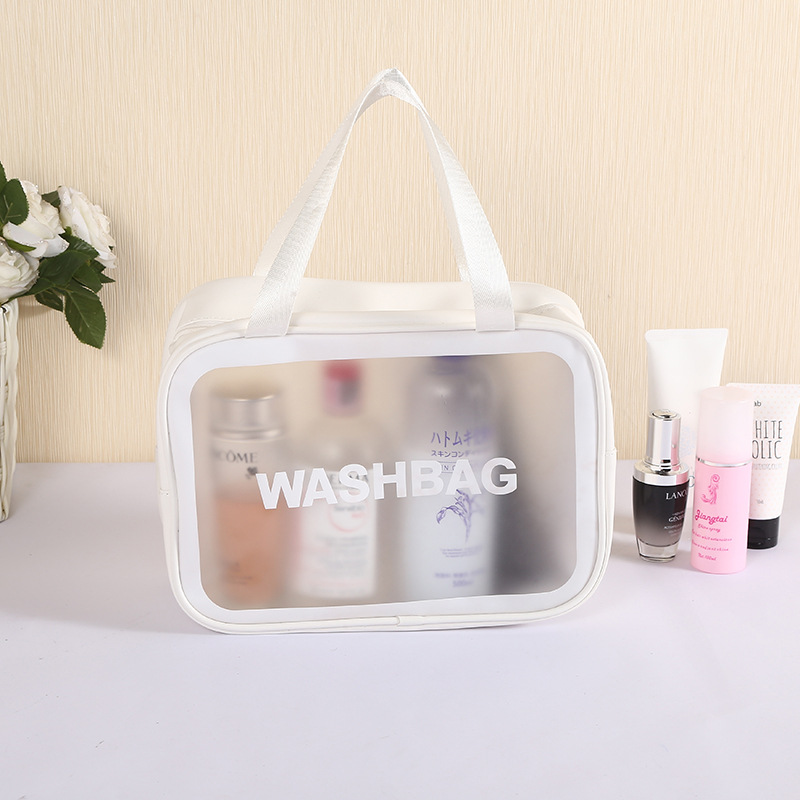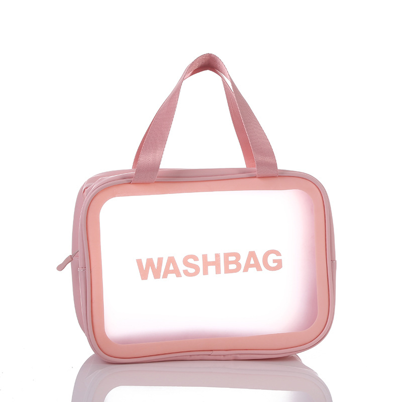 • Pvc Cosmetic Bag Transparent Large Capacity Bath Bag Pu Waterproof Satchel Toiletry Bag Women's Satchel Travel Cosmetics Bag