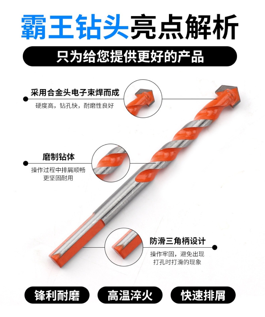 • Factory Direct multi-functional overlord drill suit ceramic tile glass drilling drill alloy ceramic Triangle drill