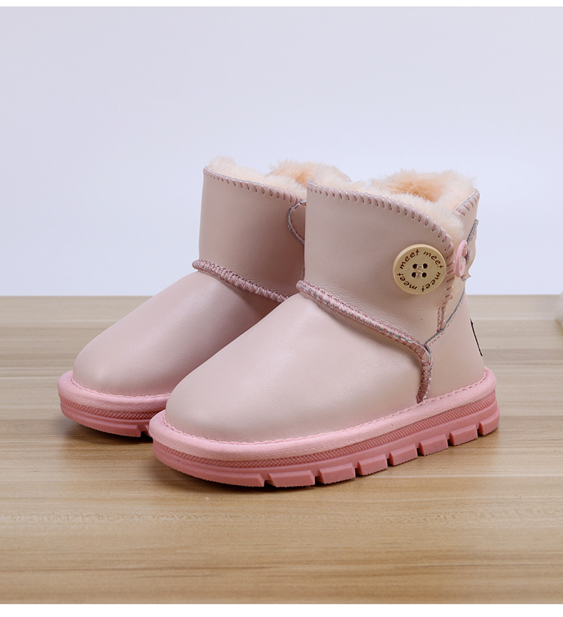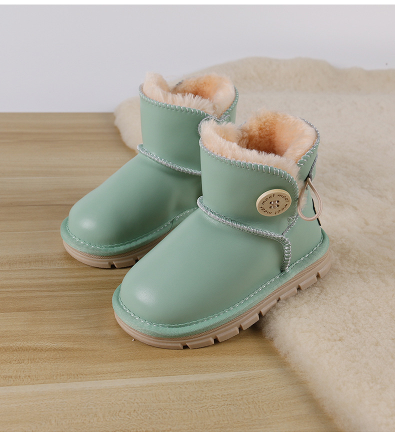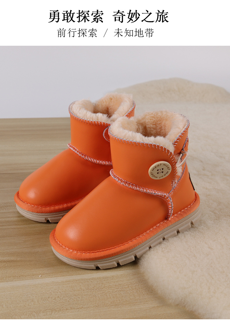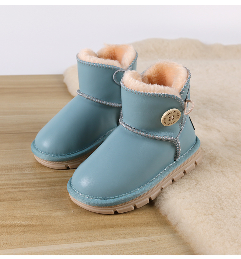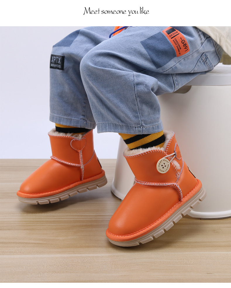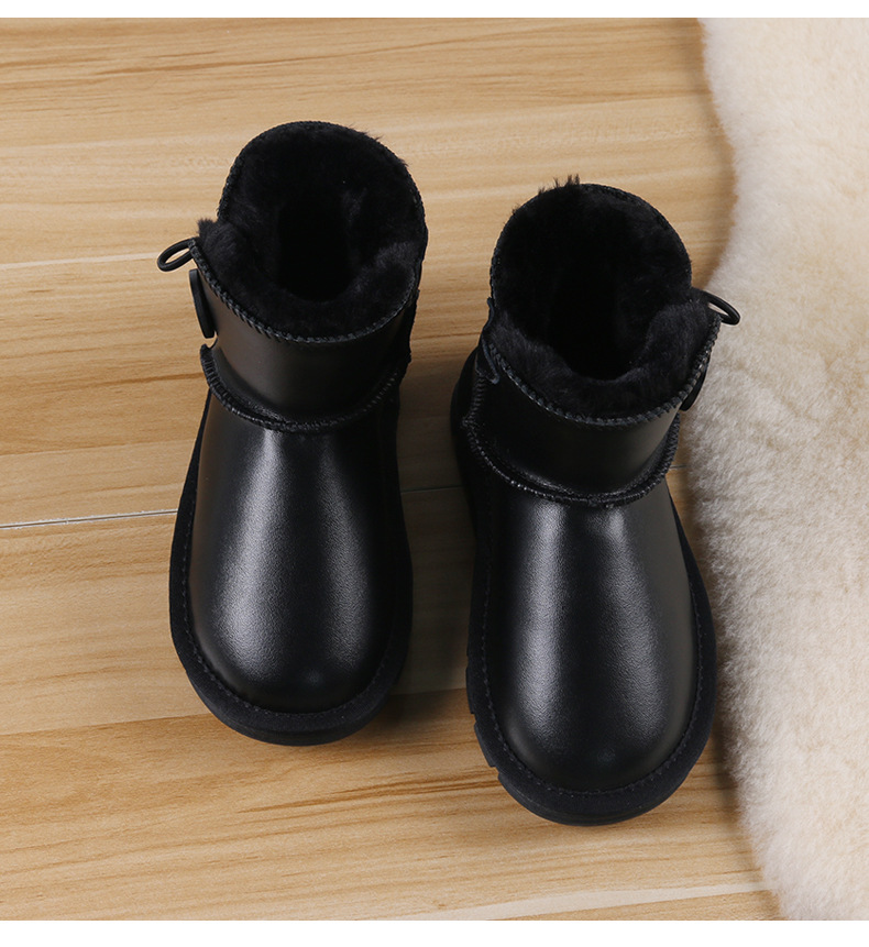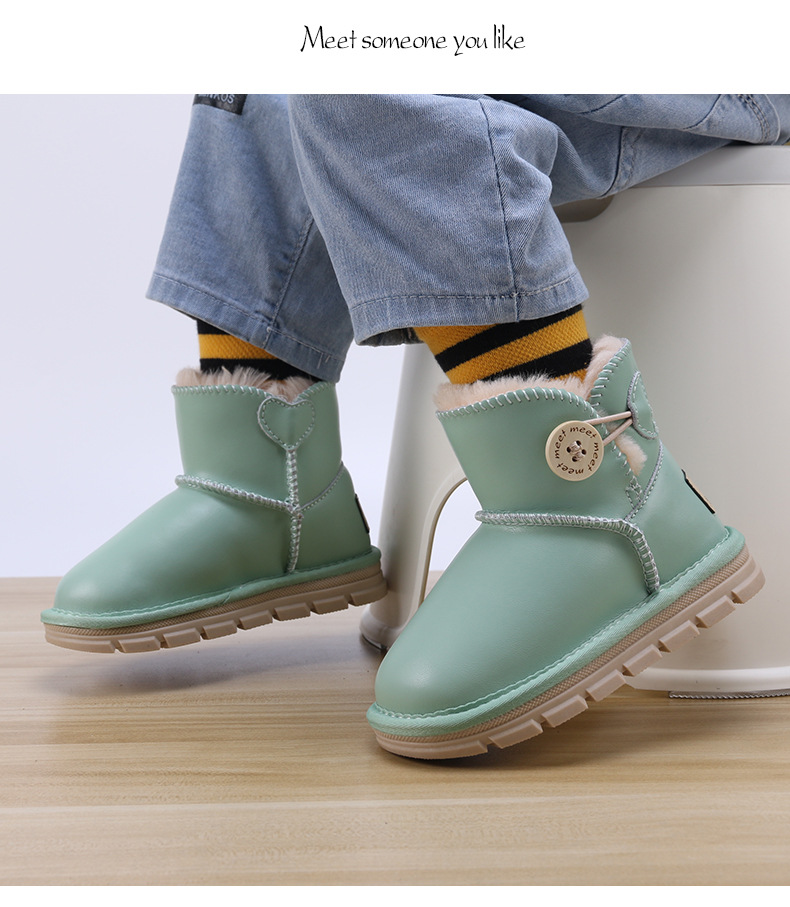 • MEET Bright Leather Children's Snow Boots Winter Baby Shoes Non-Slip Thickened Children's Boots Beef Sole Fleece-Lined Children's Cotton Shoes