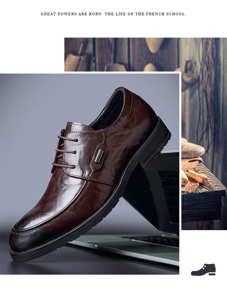 • Men's leather shoes business formal wear genuine leather elevator commuter work shoes comfortable British suit bridegroom wedding men's shoes