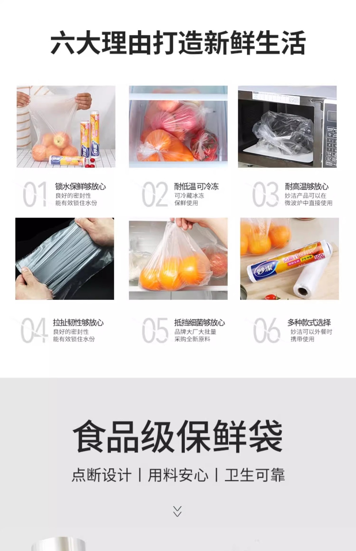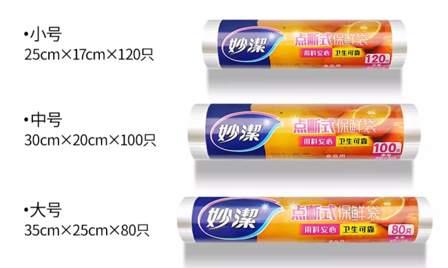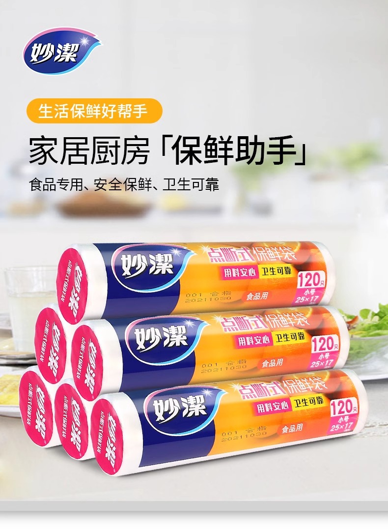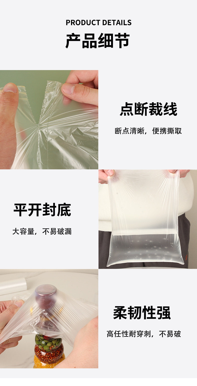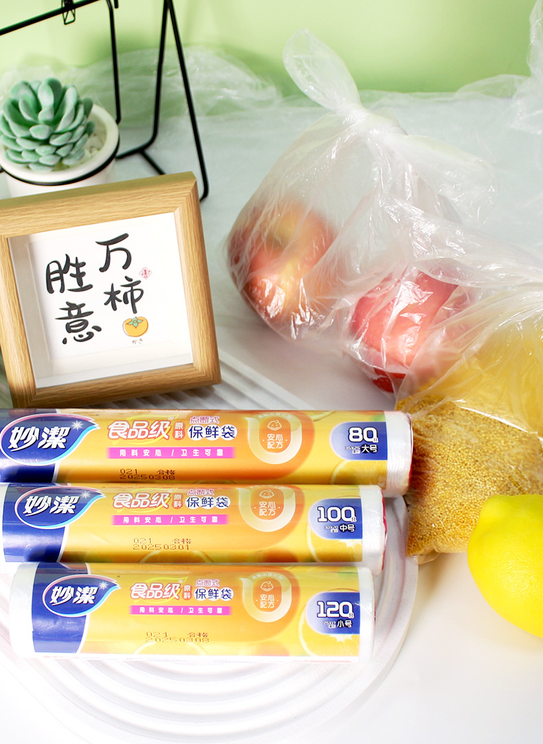 • Miaojie Fresh-Keeping Bag Household Thickeneded Food Bag Hand-Tearable Bag with Roll Bag Large, Medium and Small Point-Break Type Fresh Lock Economical Packaging