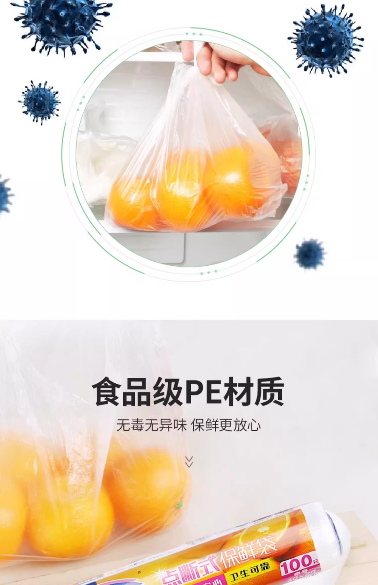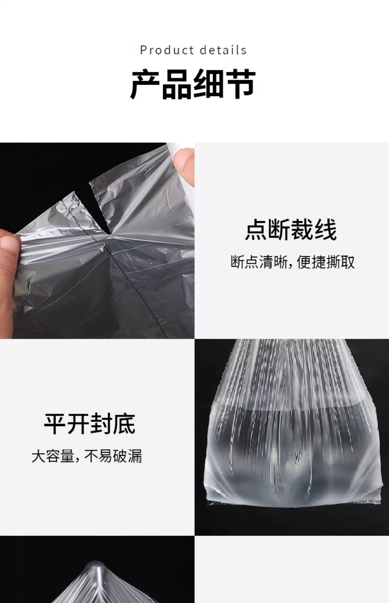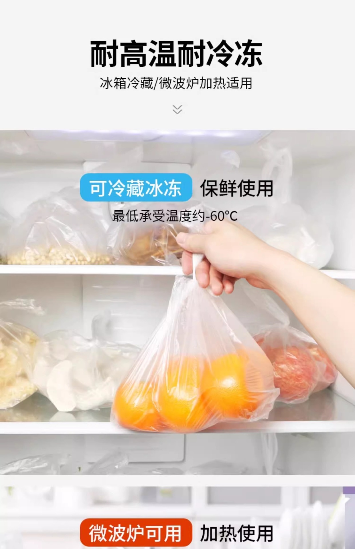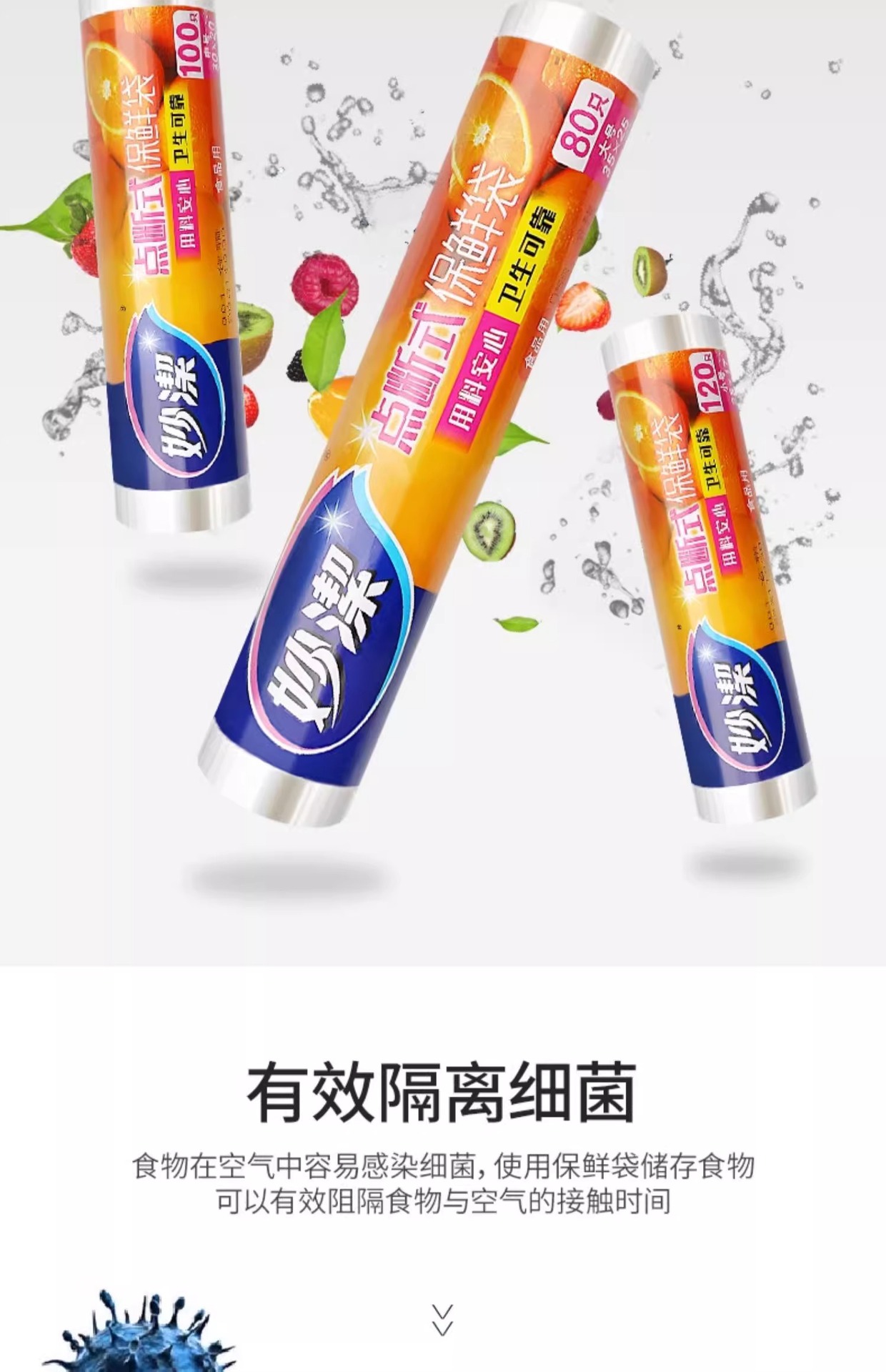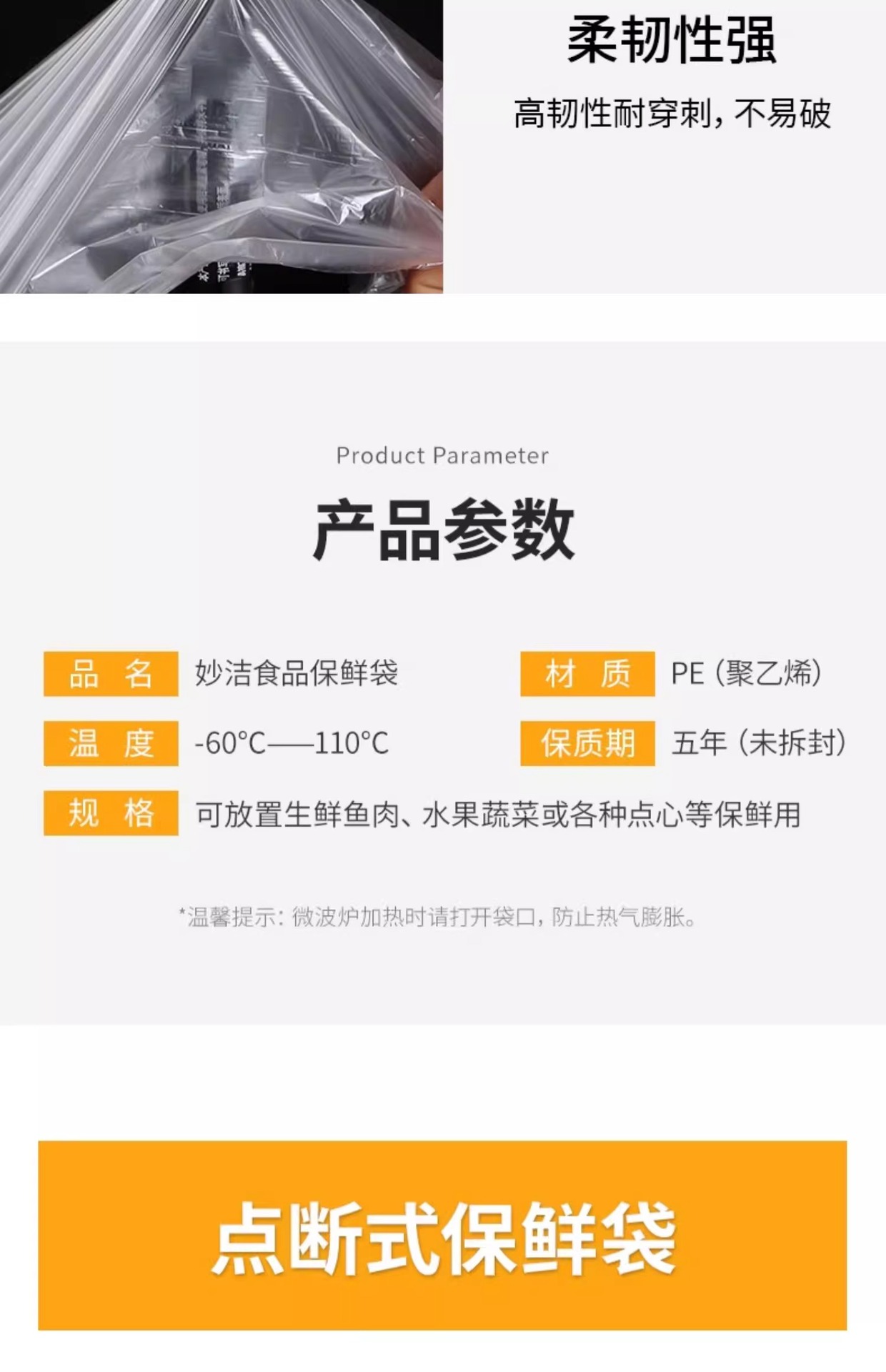 • Miaojie Fresh-Keeping Bag Household Thickeneded Food Bag Hand-Tearable Bag with Roll Bag Large, Medium and Small Point-Break Type Fresh Lock Economical Packaging