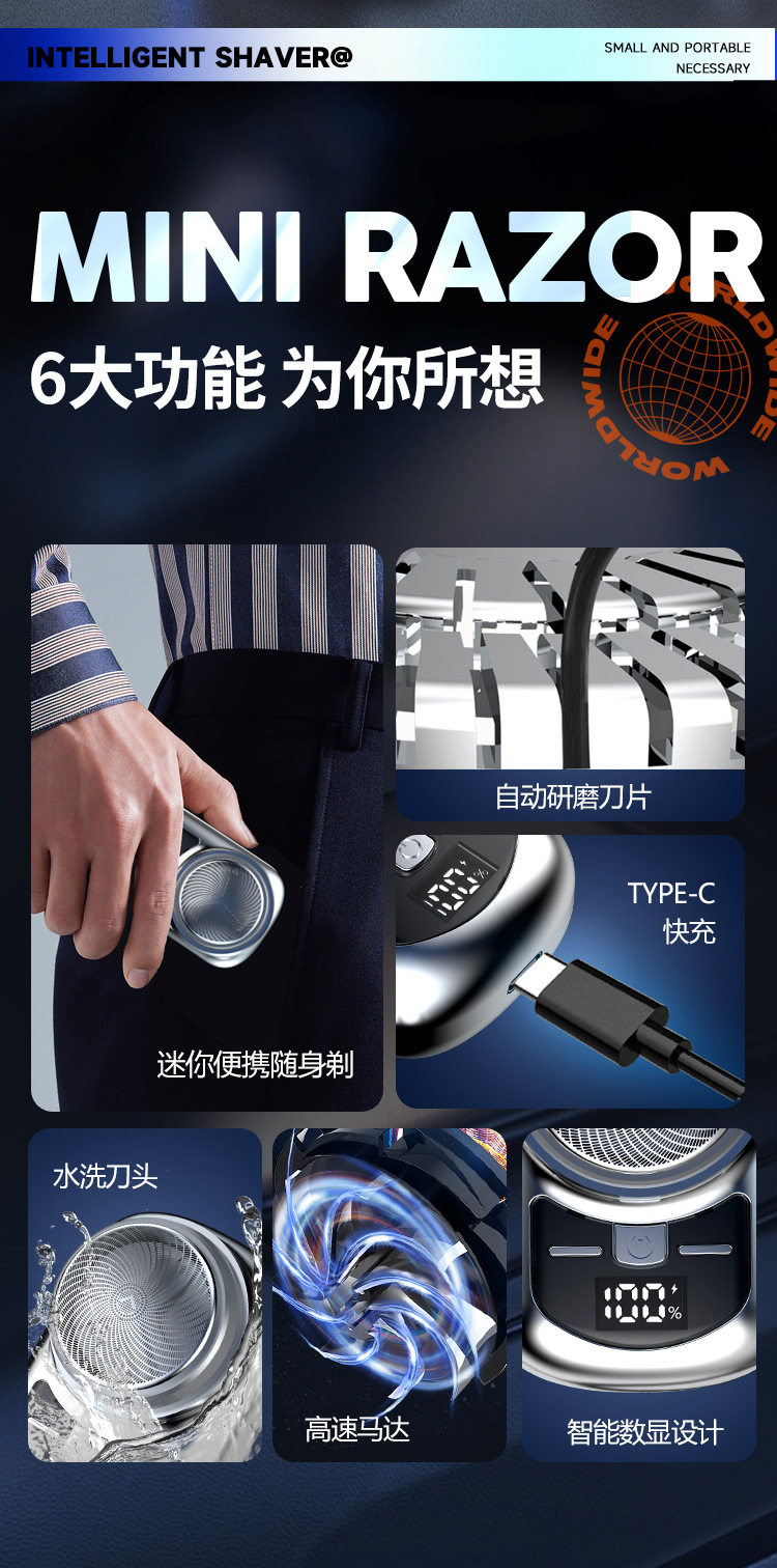 • Mini Electric Shaver, Small Portable Shaver, Powerful Rechargeable Single-Head Shaver, Hot Model Available in Stock