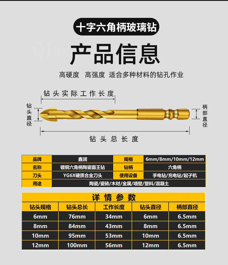 • Multi-functional cross titanium plated glass drill overlord drill wholesale vitrified tile tile metal wall special opening