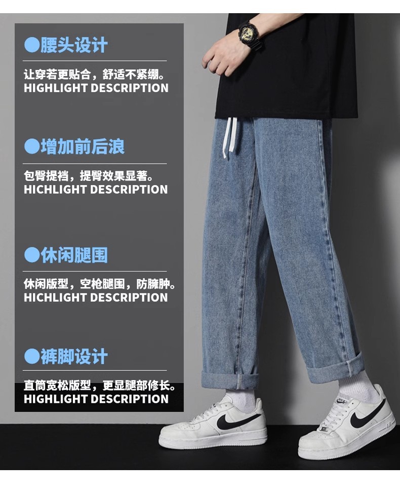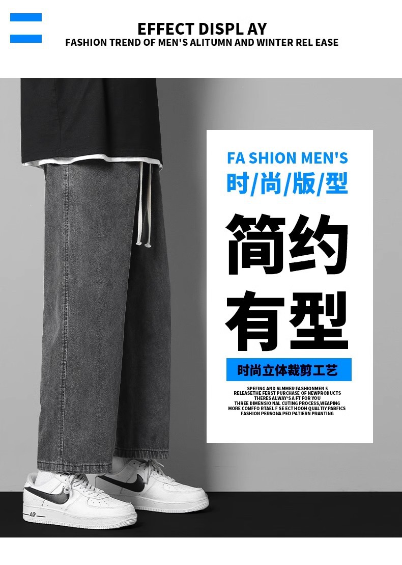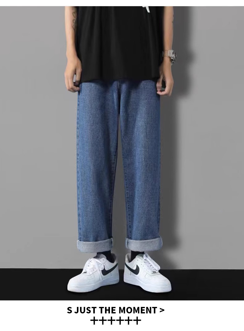 • Nasa Jeans Men's Loose Straight Summer Versatile Wide-Leg Pants Thin Drape Men's Trendy Casual Long Pants