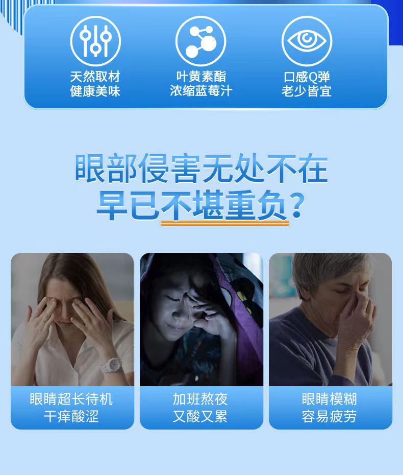 • Internet-Famous Blueberry Lutein Ester Gummies for Computer Use, Excessive Eye Strain for Adults, Eye Fatigue for Children, In-Stock Wholesale, Eye Protection