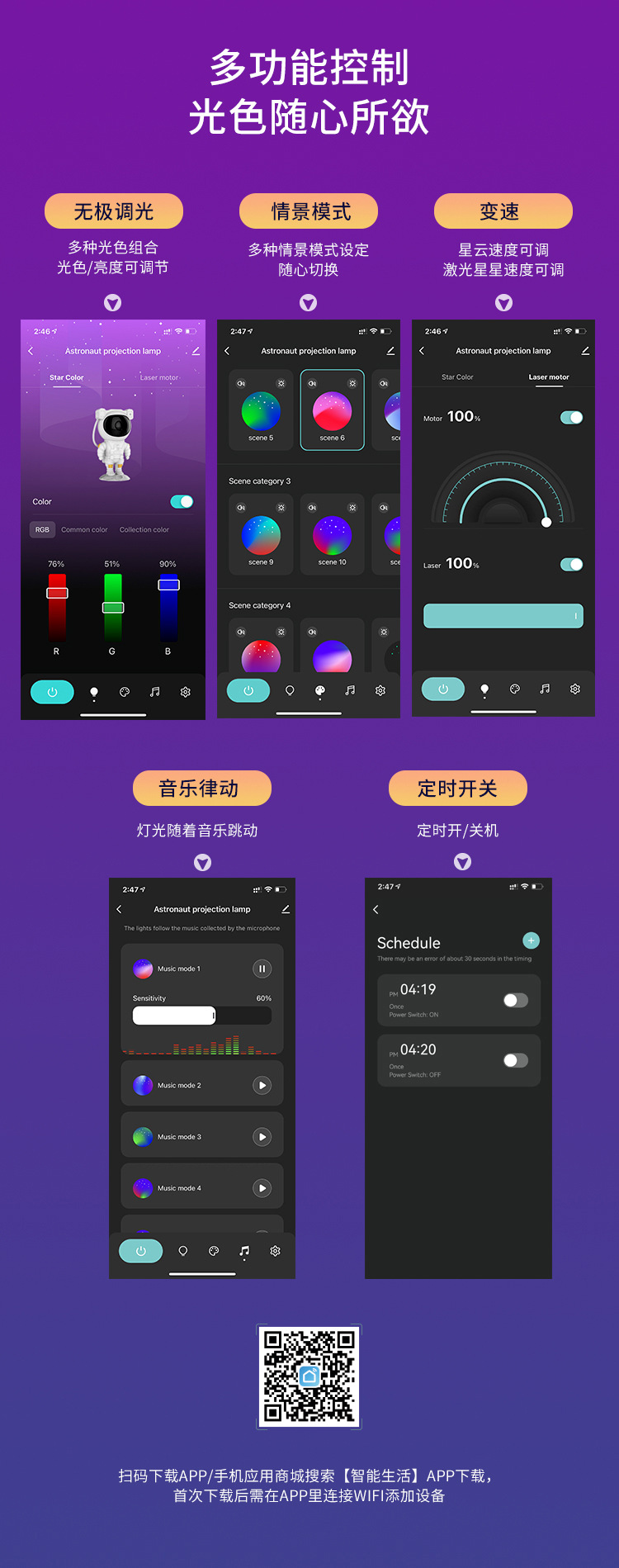 • Cross-Border Hot-Selling Astronaut Starry Sky Projection Lamp, Bedroom Dynamic Starry Atmosphere Lamp, Creative Gift Starry Sky Lamp