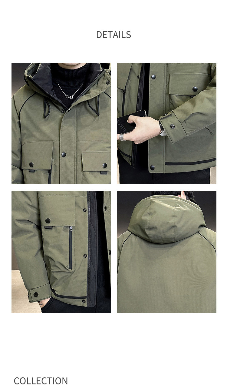 2024 Winter New Men's Hooded Down Jacket Men's Trendy Workwear Outdoor Thickened Winter Jacket
